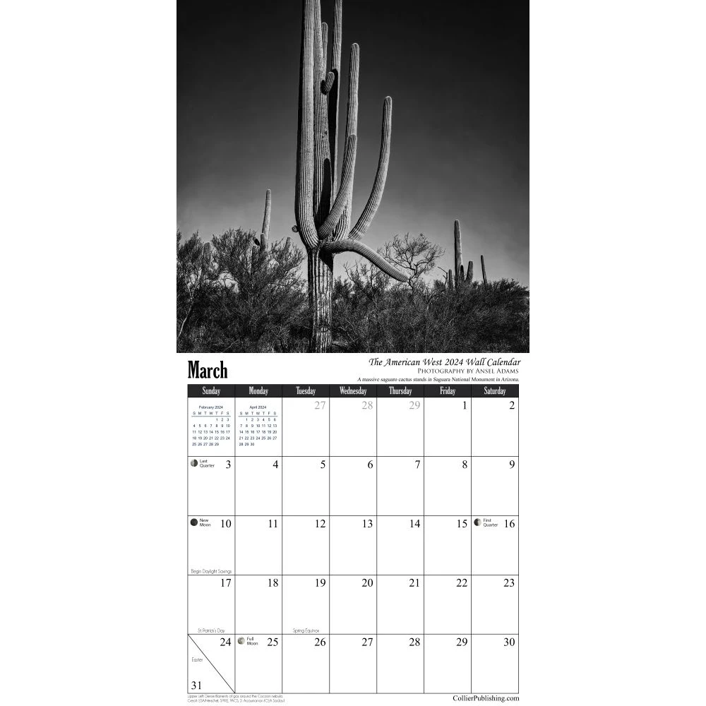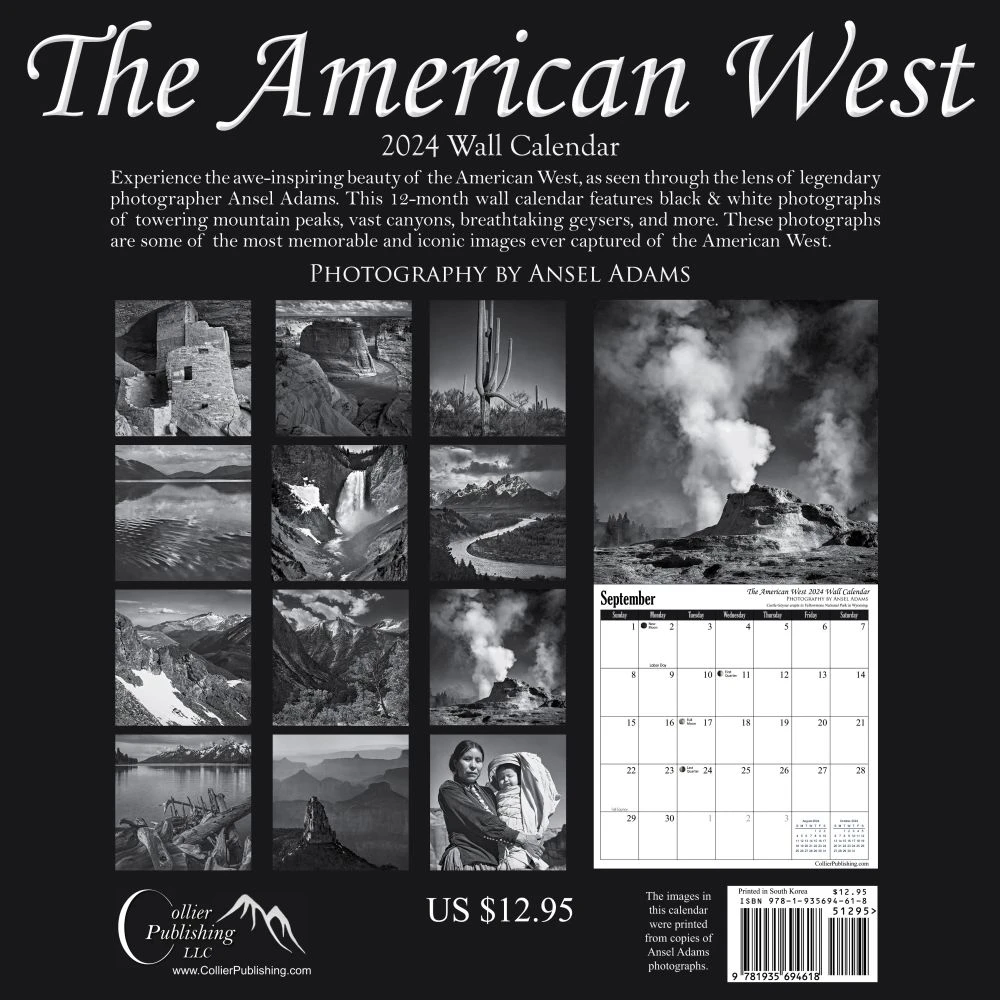 Experience the awe inspiring beauty of the American West as seen through the lens of legendary photographer Ansel Adams. This 12 month wall calendar features black & white photographs of towering mountain peaks, vast canyons, breathtaking geysers, and mor
