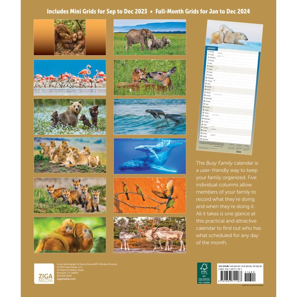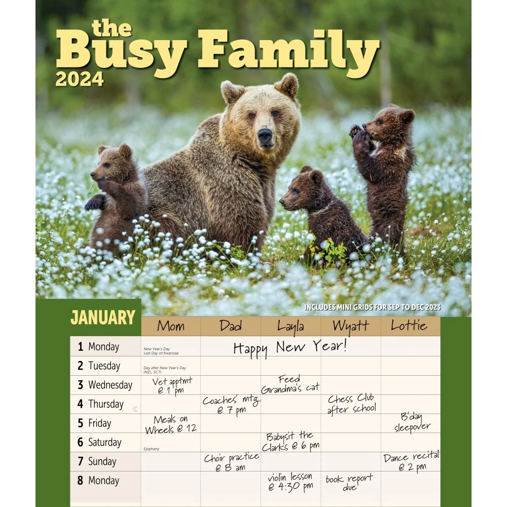 This large format calendar for 2024 provides plenty of space for today?s busy family to keep track of special events, birthdays, appointments, lessons, holidays, tournaments, and any other important activities. Everyone has their own section so there?s no excuse for missing out! Charming images of animal families and appropriate quotations remind us that every day with those we hold dear is a gift.