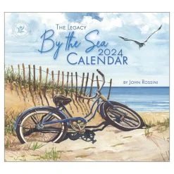 This 2024 Legacy Wall Calendar features seaside scenes by renowned artist John Rossini. Each 12 month calendar is printed on premium, linen embossed paper that has a distinctive, luxurious feel to it, and comes in a protective sleeve. The date pad is uniquely designed for each calendar title to complement the artwork. The last page contains a 2 year calendar (2023/2024) and space for notes. Brass gusset on front cover for added durability.