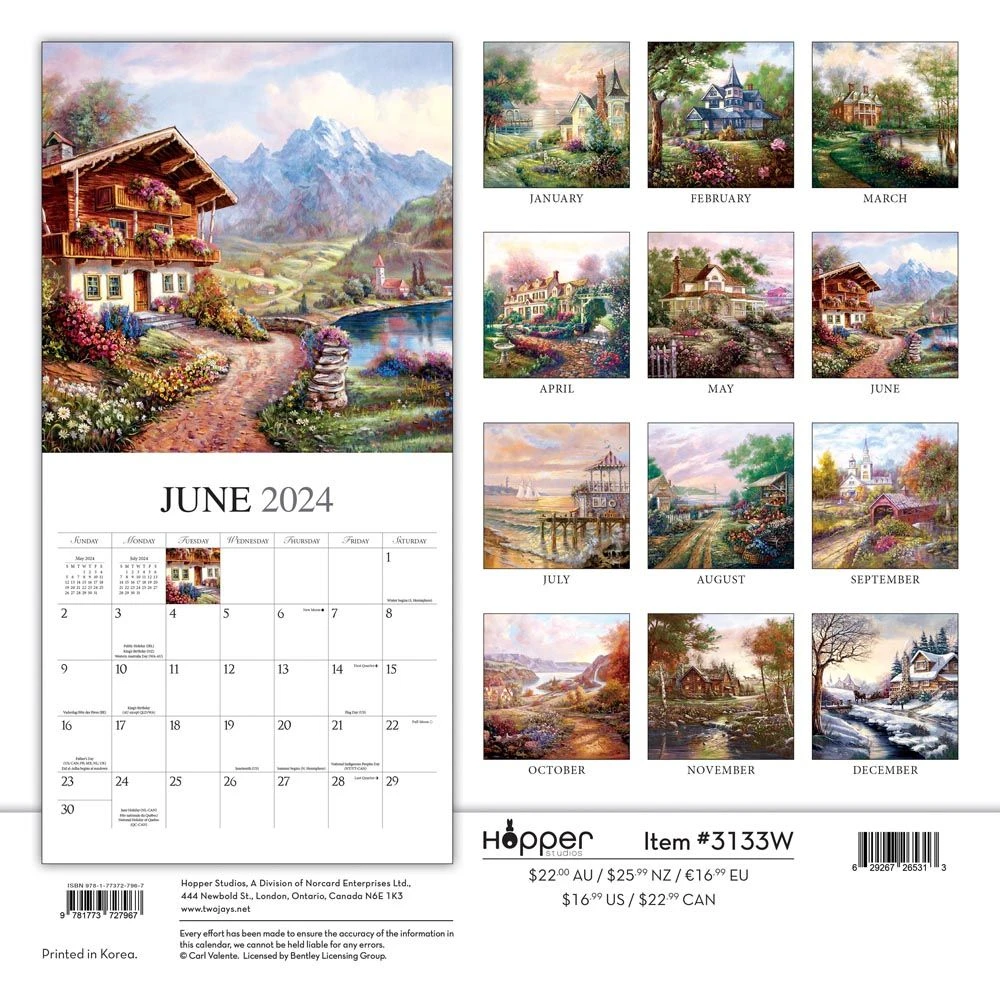 Archways of climbing plants entwine around brilliantly colored shrubs that frame quaint thatched dwellings. The artist’s landscapes are offerings from different seasons, and a palette of varying colors.