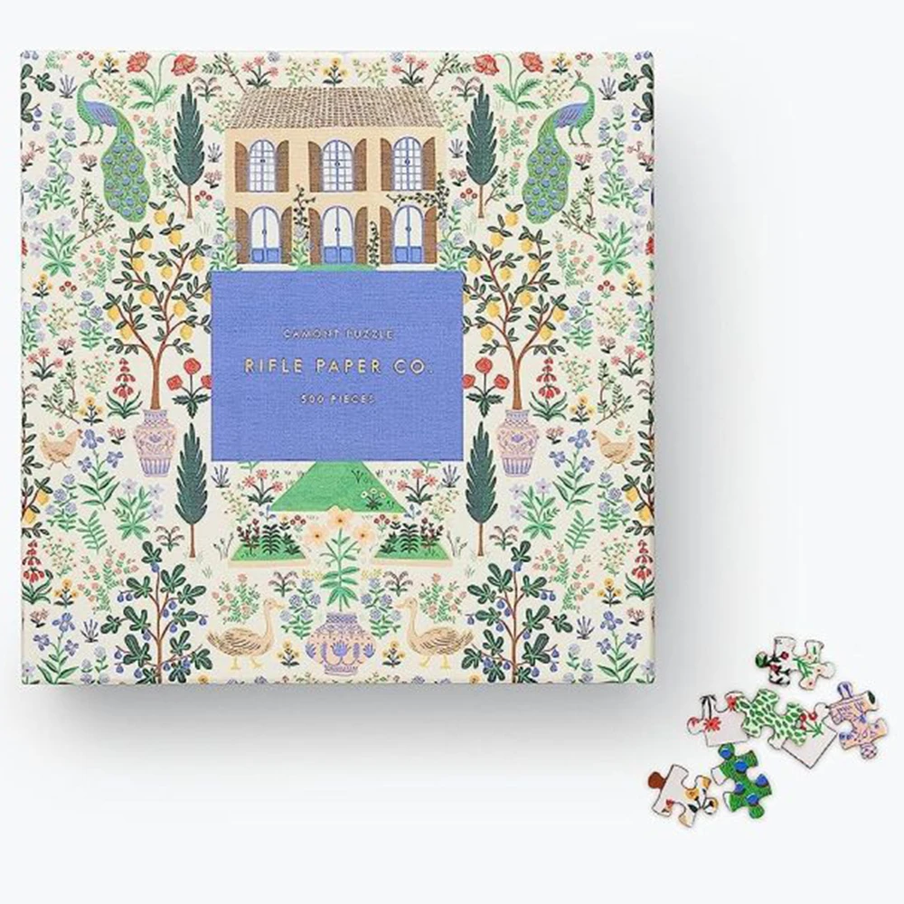 Transport yourself to the pastoral grounds of an 18th century farmhouse in Gascony, France with Rifle Paper Co.’s Camont jigsaw puzzle. This illustrated puzzles include 500 pieces, packaged in a decorative box with gold foil accents.