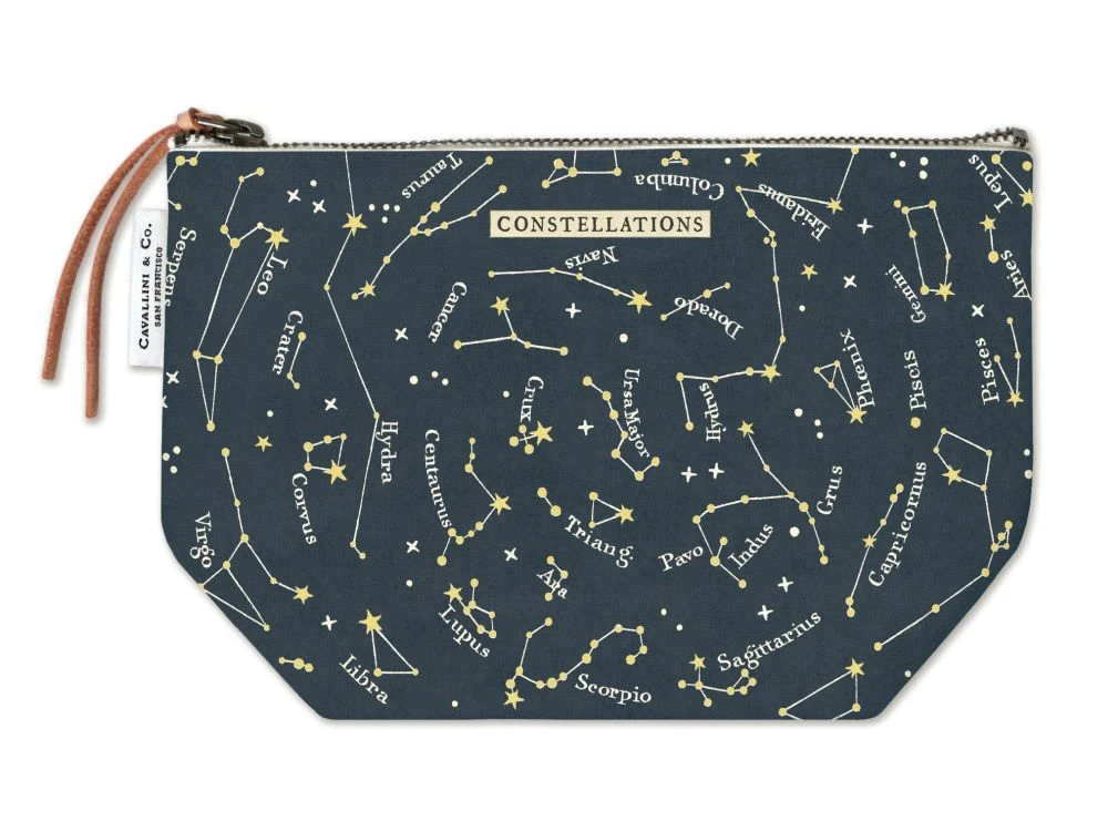 Cavallini zippered pouches are made from 100% natural cotton and feature a high quality YKK zipper, a leather zipper pull, and dark navy cotton lining. These stylish pouches are perfect for your small items and pair perfectly with the Vintage Tote.