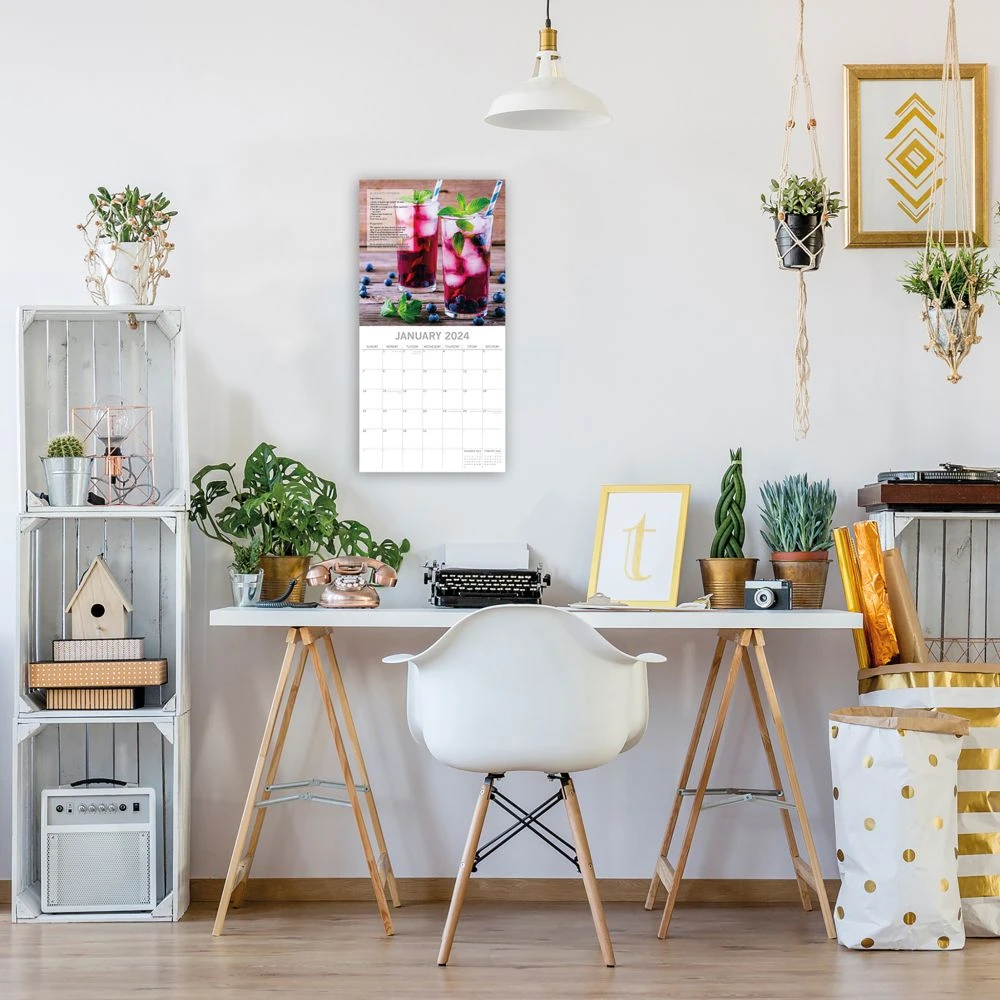 Perfect for cocktail fans. Each month features a delicious recipe and image of some of the most loved cocktails, while the large grid is ideal for the home and office with space for birthdays and notes.