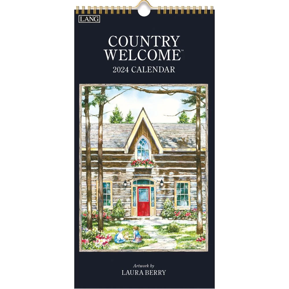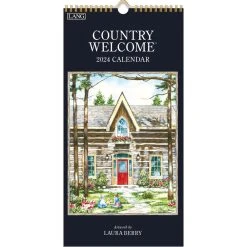 The Country Welcome 2024 Vertical Wall Calendar features monthly artwork of various country homes by Laura Berry in a space efficient vertical format. LANG Vertical Wall Calendars feature linen embossed paper stock, a spiral binding with hook for hanging, and matching gift jacket.