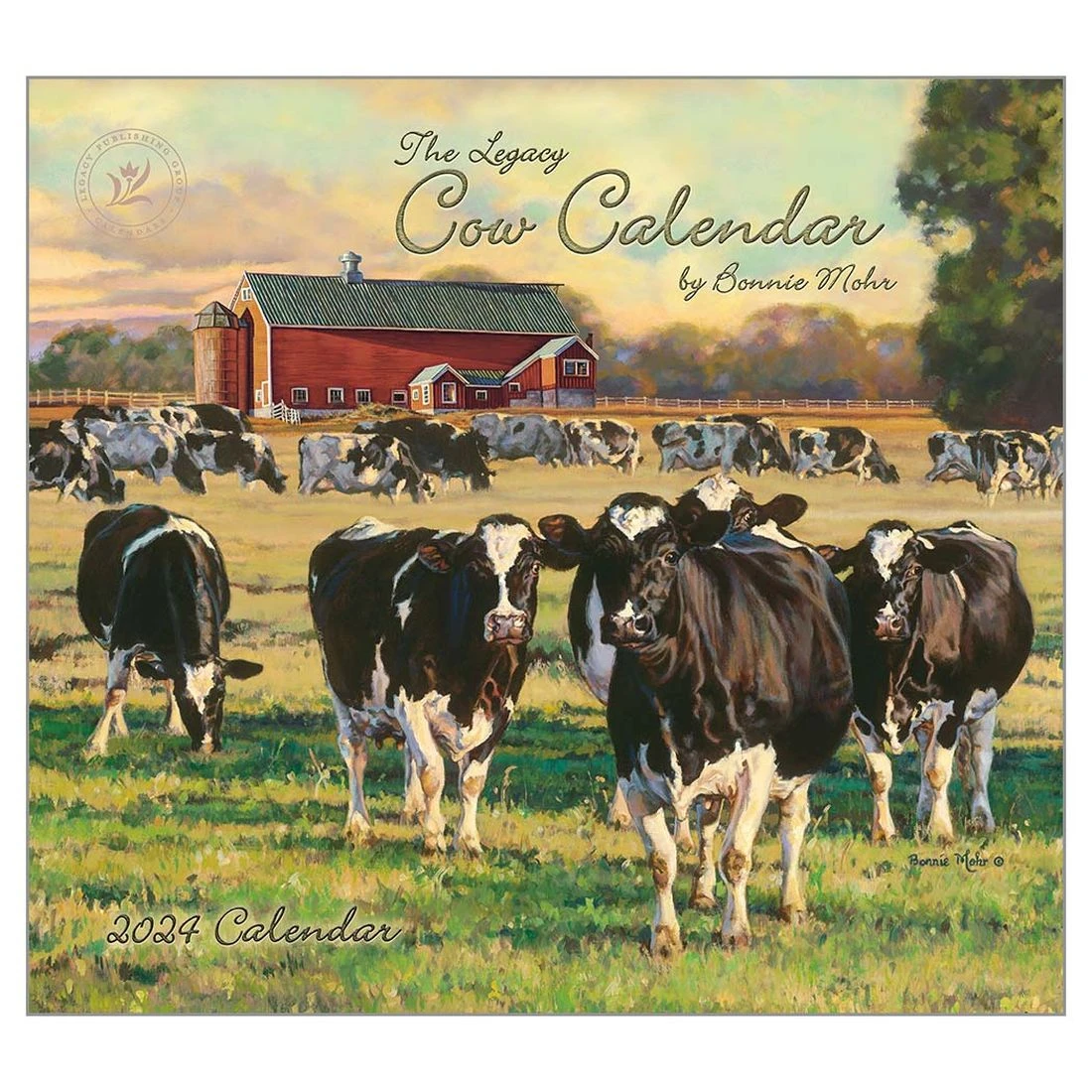 This 2024 Legacy Wall Calendar features bovine beauties showcased in the detailed, realistic paintings of artist Bonnie Mohr. Each 12 month calendar is printed on premium, linen embossed paper that has a distinctive, luxurious feel to it, and comes in a protective sleeve. The date pad is uniquely designed for each calendar title to complement the artwork. The last page contains a 2 year calendar (2023/2024) and space for notes. Brass gusset on front cover for added durability.