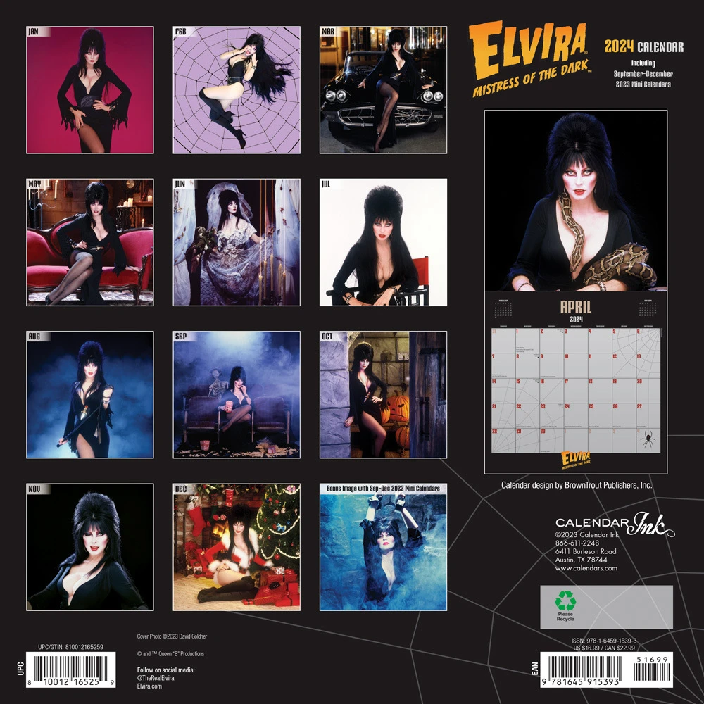 So why wait? Add some excitement to your daily routine with this exclusive calendar. And remember, at Calendars.com, your satisfaction is our priority. We’d love to hear your feedback. Order your Elvira Wall Calendar today and get ready to step into a world of mystery and allure every day of the year!