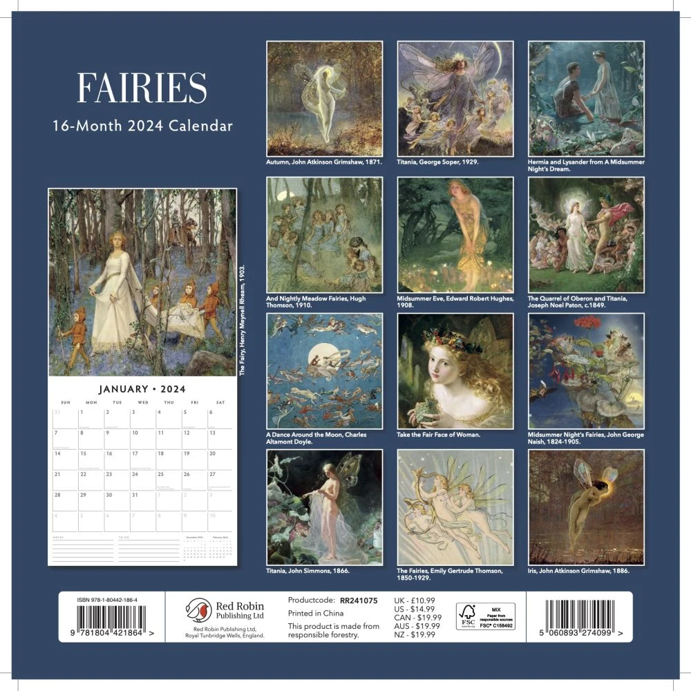 This beautiful 2024 Fairies Calendar is ideal for any lover of these ethereal creatures. Step into the magical world of Fairies in 2024, featuring plenty of space to write important dates and to plan your year ahead.