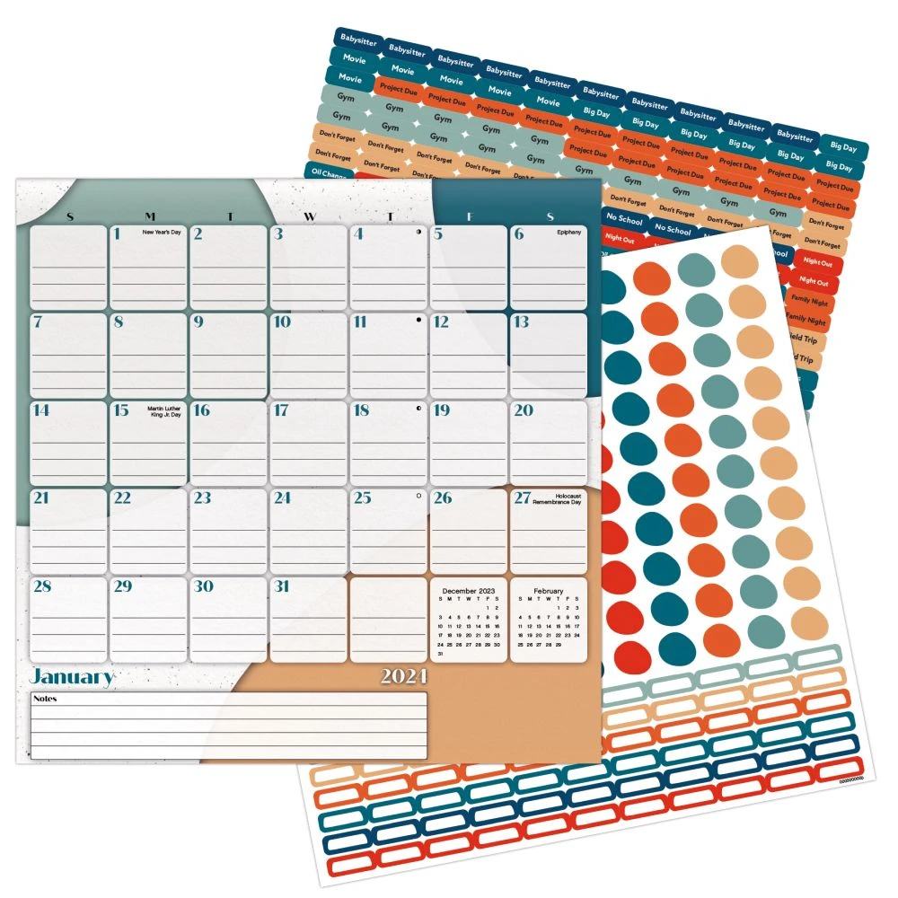 DateWorks 2024 Magnetic Family Calendars feature large grid spaces and added lines that give you plenty of room to write down important notes and reminders so you can stay organized all year. Magnetic Calendars include 350+ calendar reminder stickers to highlight events and four magnets with adhesive backing so you can hang them on the fridge, filing cabinet, or any magnetic surface. These DateWorks 16 Month Calendars feature monthly calendar spreads for September 2023 to December 2024 that are easy to remove as you progress through the year.
