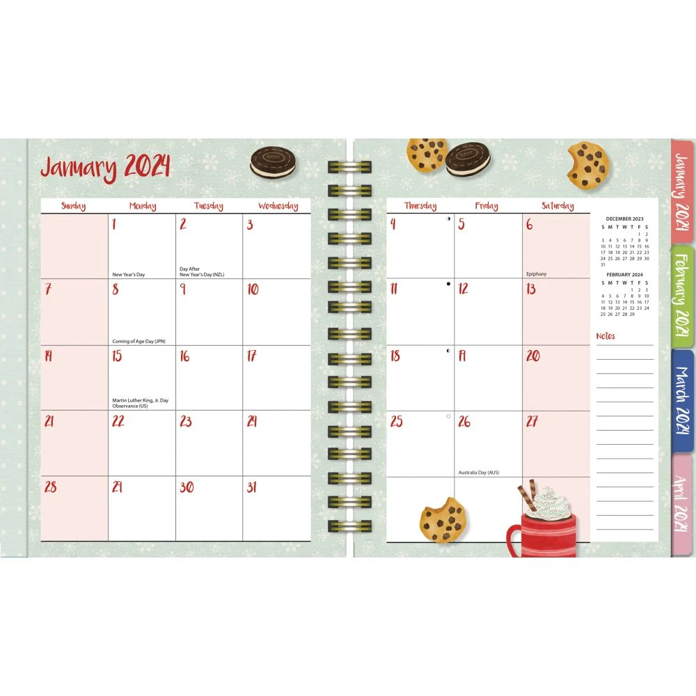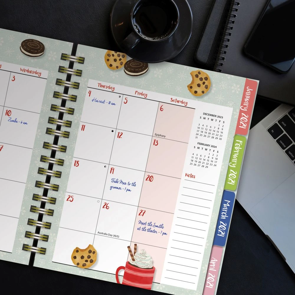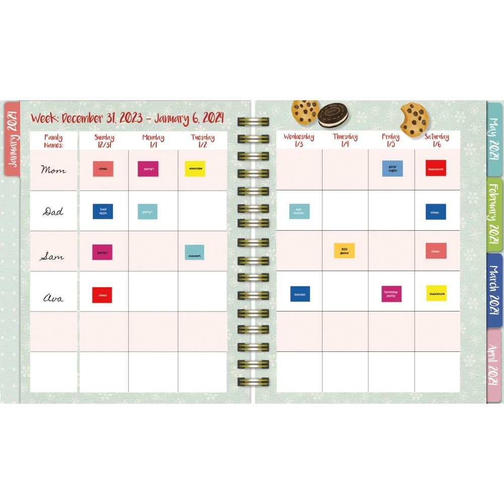 Take it a step further with its creative artwork by Paula Joerling that will make each month come alive with new inspiration. And never worry about losing any small items thanks to its convenient pockets for added storage. Bound with a spiral binding and elastic band to keep each page safe and secure, get your life organized now with the Family Plan It 2024 Planner!