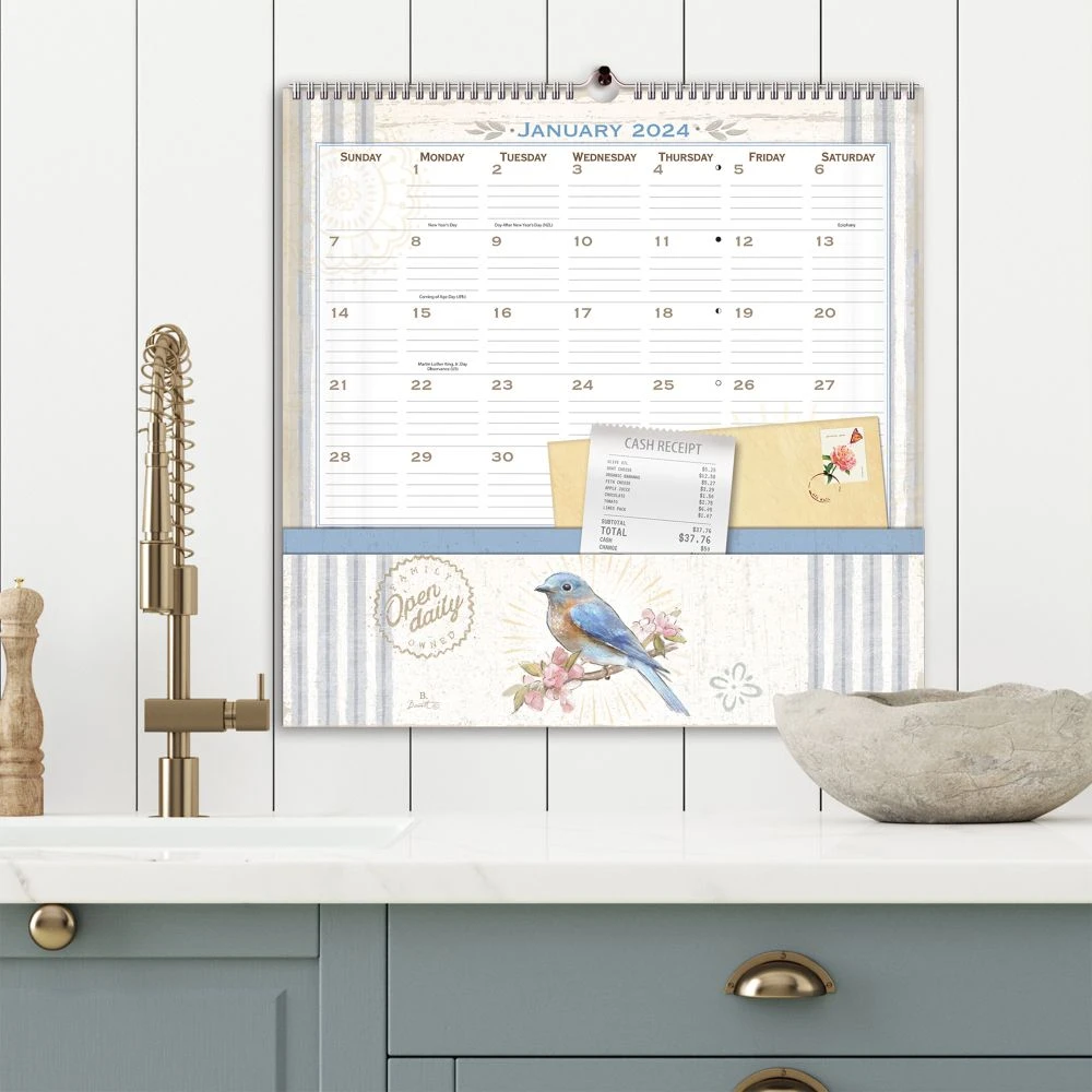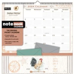 The 2024 Farm Fresh Note Nook Calendar helps you keep important items right at your fingertips! Every month, two pockets let you stash bills, receipts, invitations, mail and more, while the roomy calendar grid helps you track daily events and appointments. This calendar also comes equipped with handy Wall Hanger, making it easy to place anywhere in your home or office. Each top pocket features different artwork by Chad Barrett, while coordinating colors brighten up the bottom pocket. Note Nook, the original 24 pocket calendar, is designed to help you stay organized all through the year!