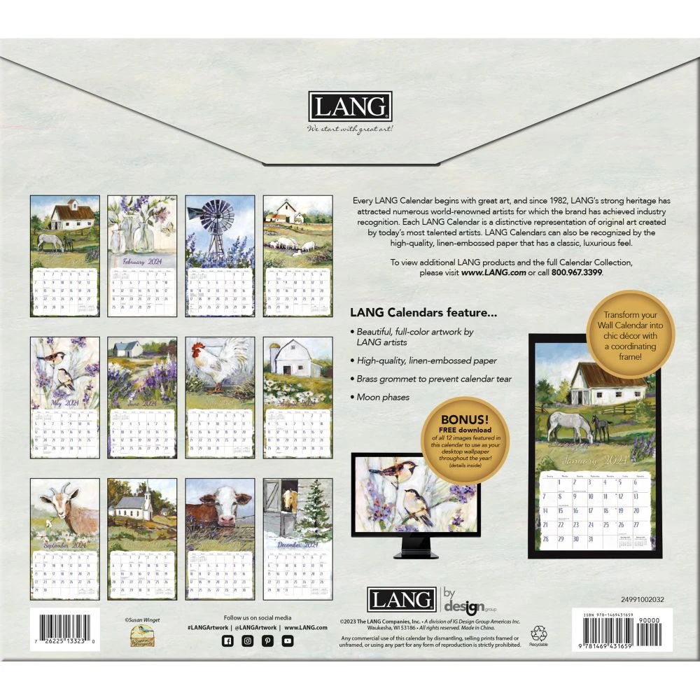 Everyday planning meets beautiful art in the Fields of Home 2024 Wall Calendar, featuring artwork by Susan Winget. Complete with all the beautiful and practical features you expect from LANG wall calendars, this high quality calendar includes a matching linen embossed gift sleeve and a brass hanging grommet to prevent calendar tears. Desktop wallpaper download available.
