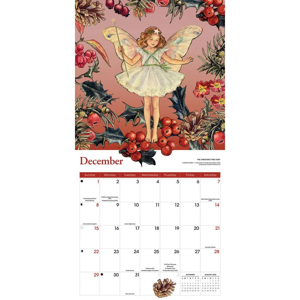 Fantastical fairies, budding blooms, and vibrant colors all await in the enchanting Flowers Fairies 2024 Wall Calendar. The original art of Cicely Mary Barker celebrates the magic of seasonal flowers and roadside posies with exquisite attention to detail and the whimsy of childlike pixies. Printed with soy based inks on FSC certified paper, this deluxe wall calendar features large monthly grids that offer ample room for jotting notes, along with four bonus months of September through December of 2023. It also includes moon phases (CST), standard U.S., and international holidays.