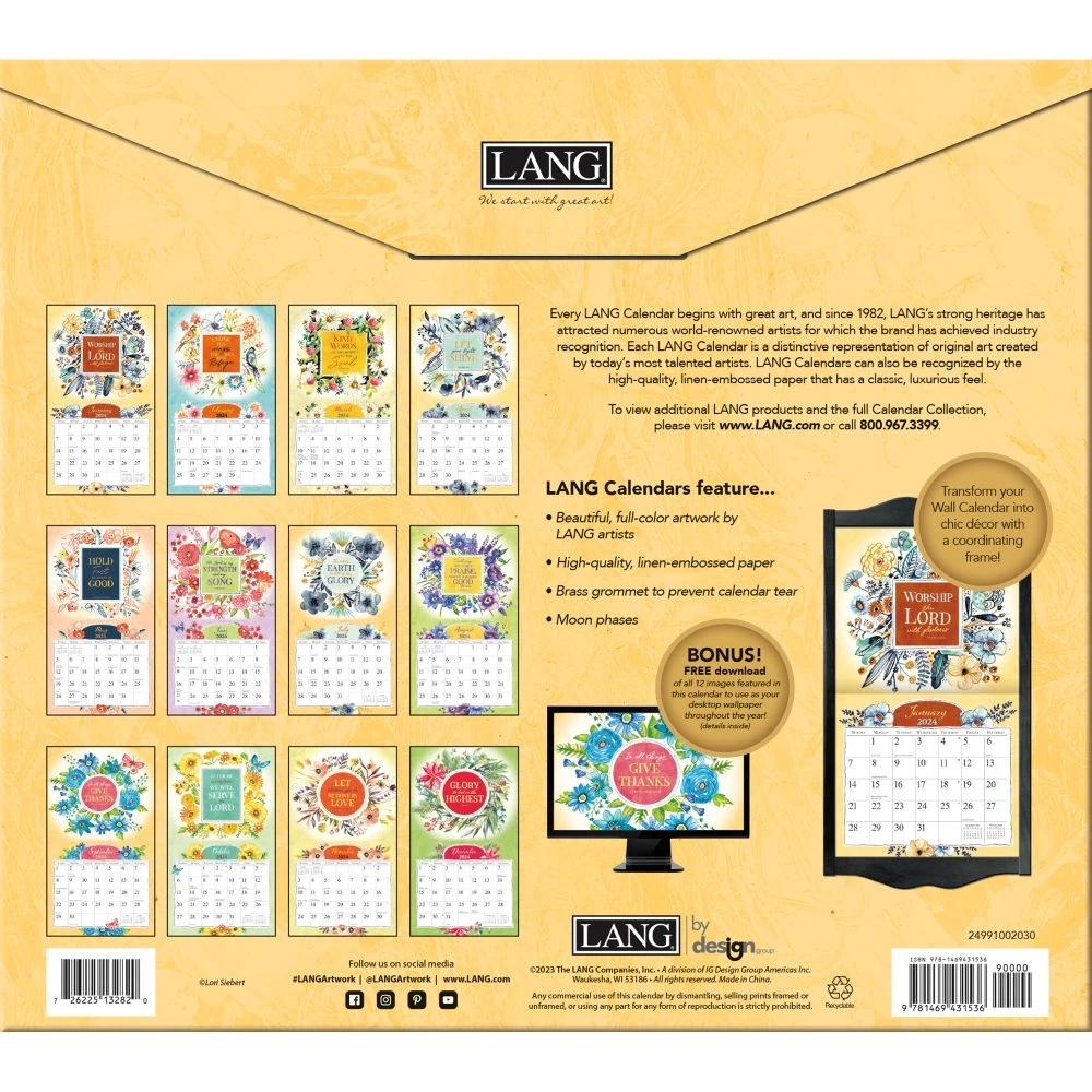 Everyday planning meets beautiful art in the Forever Faithful 2024 Wall Calendar, featuring artwork by Lori Seibert. Complete with all the beautiful and practical features you expect from LANG wall calendars, this high quality calendar includes a matching linen embossed gift sleeve and a brass hanging grommet to prevent calendar tears. Desktop wallpaper download available.