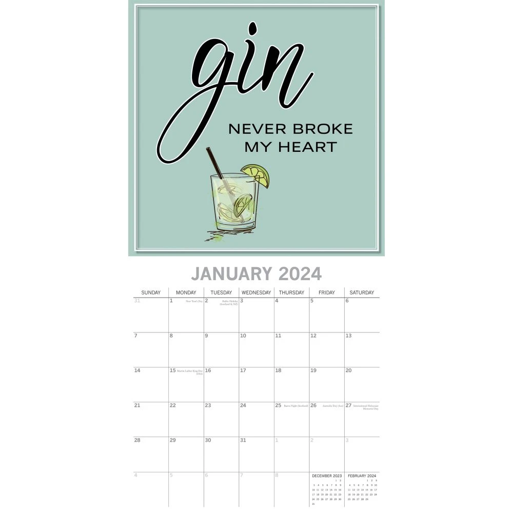 Gin lovers rejoice and let the fun beGIN! The Gin 2024 Wall Calendar is here, and it’s sure to bring a daily chuckle. Each month features hilarious captions on images of gin, while the large grid is ideal for the home and office with space for birthdays and notes. So don’t wait another second and add some merriment to your wall before it runs dry!