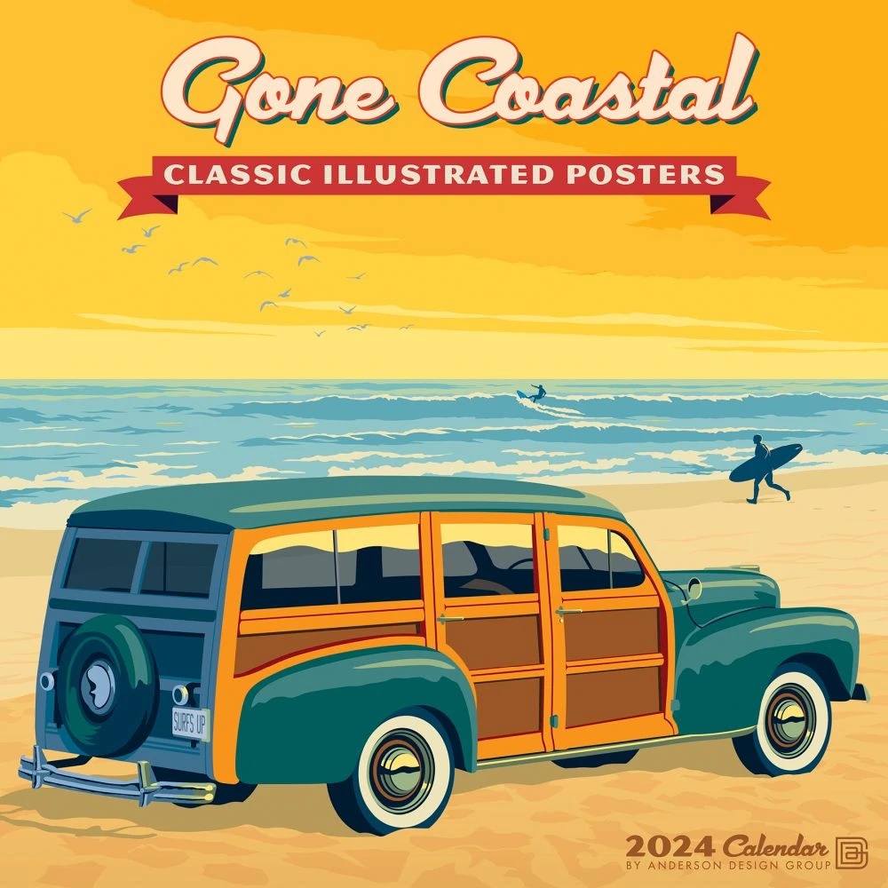 If the cure for anything is salt water, it’s time to chart a course to the seashore. Inspired by poster art from the late 1800s to the mid 1900s, Anderson Design Group has created a collection of illustrations celebrating the best coastal destinations from Aruba to Cape Cod. Each month highlights an iconic location with striking perspectives, vibrant colors, and vintage lettering. Printed with soy based inks on FSC certified paper, this 12?x 24? wall calendar features condensed monthly grids, along with four bonus months of September through December of 2023. Also includes moon phases (CST), standard U.S., and international holidays.