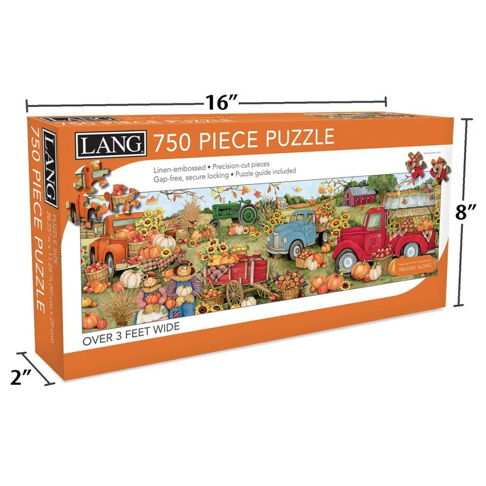 LANG jigsaw puzzles are a fun and challenging activity to do with friends and family! Take on the Harvest Truck 750 Piece Panoramic Puzzle, featuring artwork by Susan Winget. Each puzzle piece is finished with linen embossed paper so the completed piece looks like one large canvas! If you get stumped, an art guide print is included to help you out.