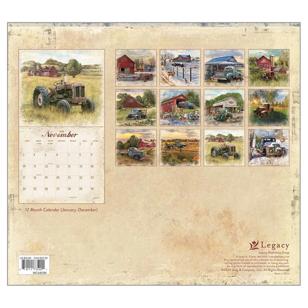 This 2024 Legacy Wall Calendar features the paintings of American artist, Greg Giordano that celebrates our love for trucks, tractors, antique cars and those places we hold close in our hearts and memories, and comes with a FREE frameable print. Each 12 month calendar is printed on premium, linen embossed paper that has a distinctive, luxurious feel to it, and comes in a protective sleeve. The date pad is uniquely designed for each calendar title to complement the artwork. The last page contains a 2 year calendar (2023/2024) and space for notes. Brass gusset on front cover for added durability.