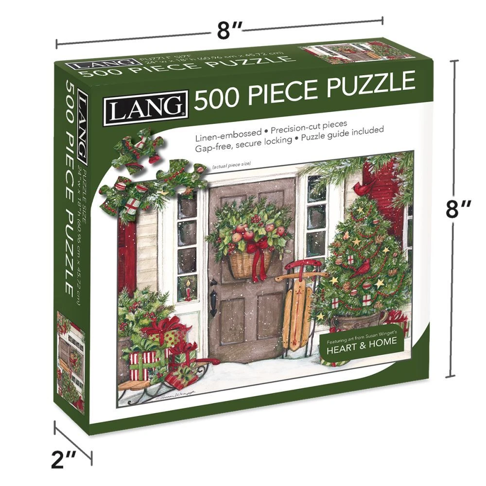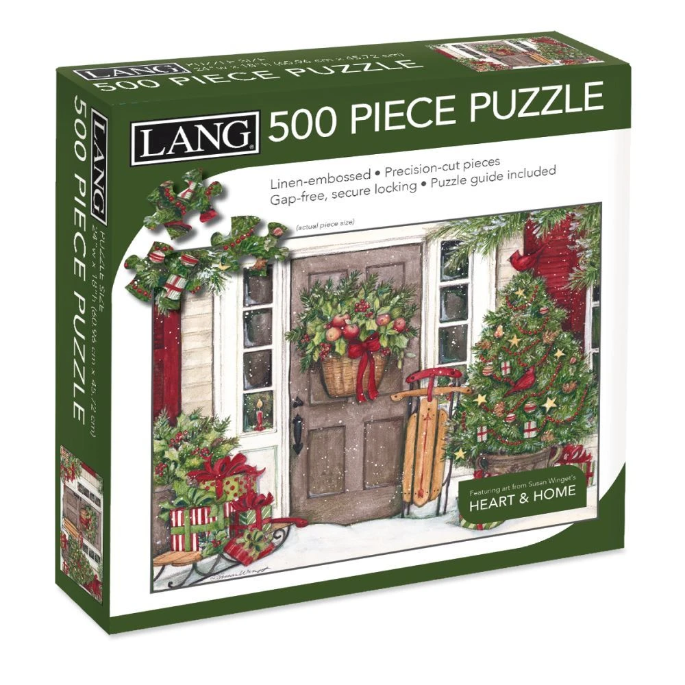 This gorgeous jigsaw puzzle captures the welcoming spirit of Christmas with its image of a decorated home’s festive Christmas tree and wrapped presents. Based on artwork by Susan Winget, LANG’s Holiday Door 500 Piece Puzzle features precision cut pieces and an art print guide for easy visual reference. A great host gift or gift exchange present, this high quality jigsaw puzzle is also a wonderful way to spend family time during the holidays.