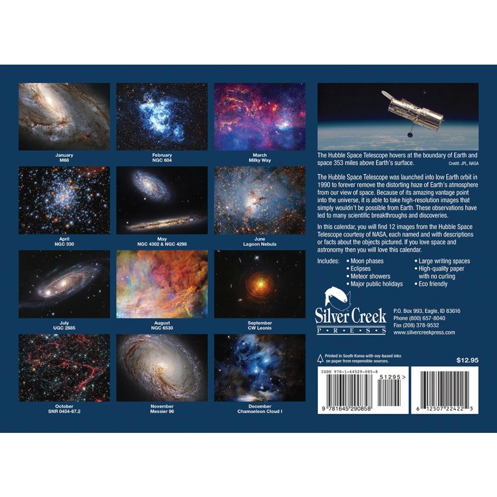 Explore space in our new 2024 Hubble Space calendar! With shots from the Hubble telescope. Be amazed by all the constelations, nebulas, and stars! Includes a little icon for days that have meteor showers!