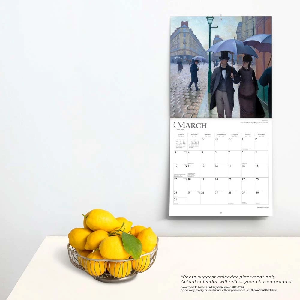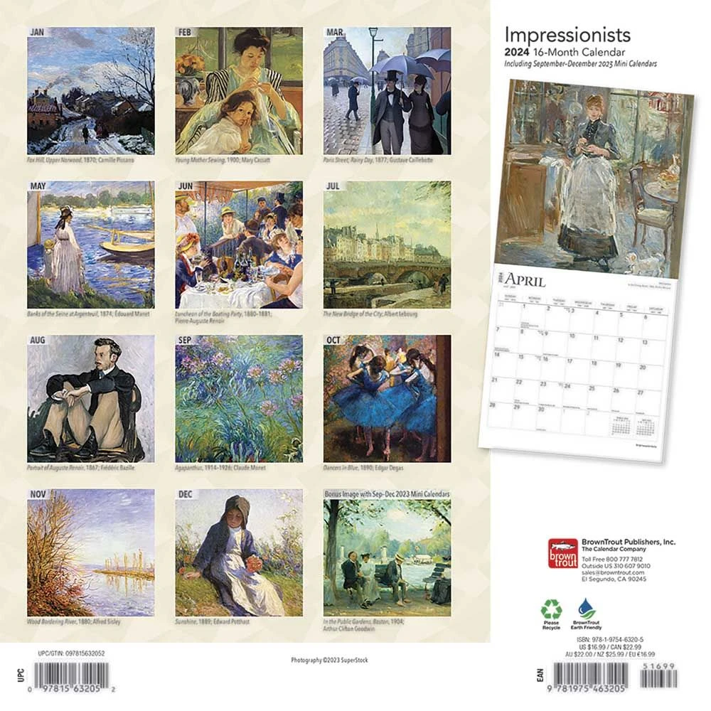 Considering the enormous popularity Impressionist art enjoys today, and considering the major influence it has had on numerous subsequent artistic movements, it is hard to imagine a time when it was looked upon with almost universal disdain. But it was indeed so when an early group of French Impressionists held their first independent show in 1874. Critics, appalled at the short, spontaneous brush strokes and bright colors, called the likes of Monet, Pissaro, Renoir, and Degas lunatics. But thankfully these masters pushed forward and stood firm behind their works. Those who love the Impressionists are sure to enjoy this striking calendar.