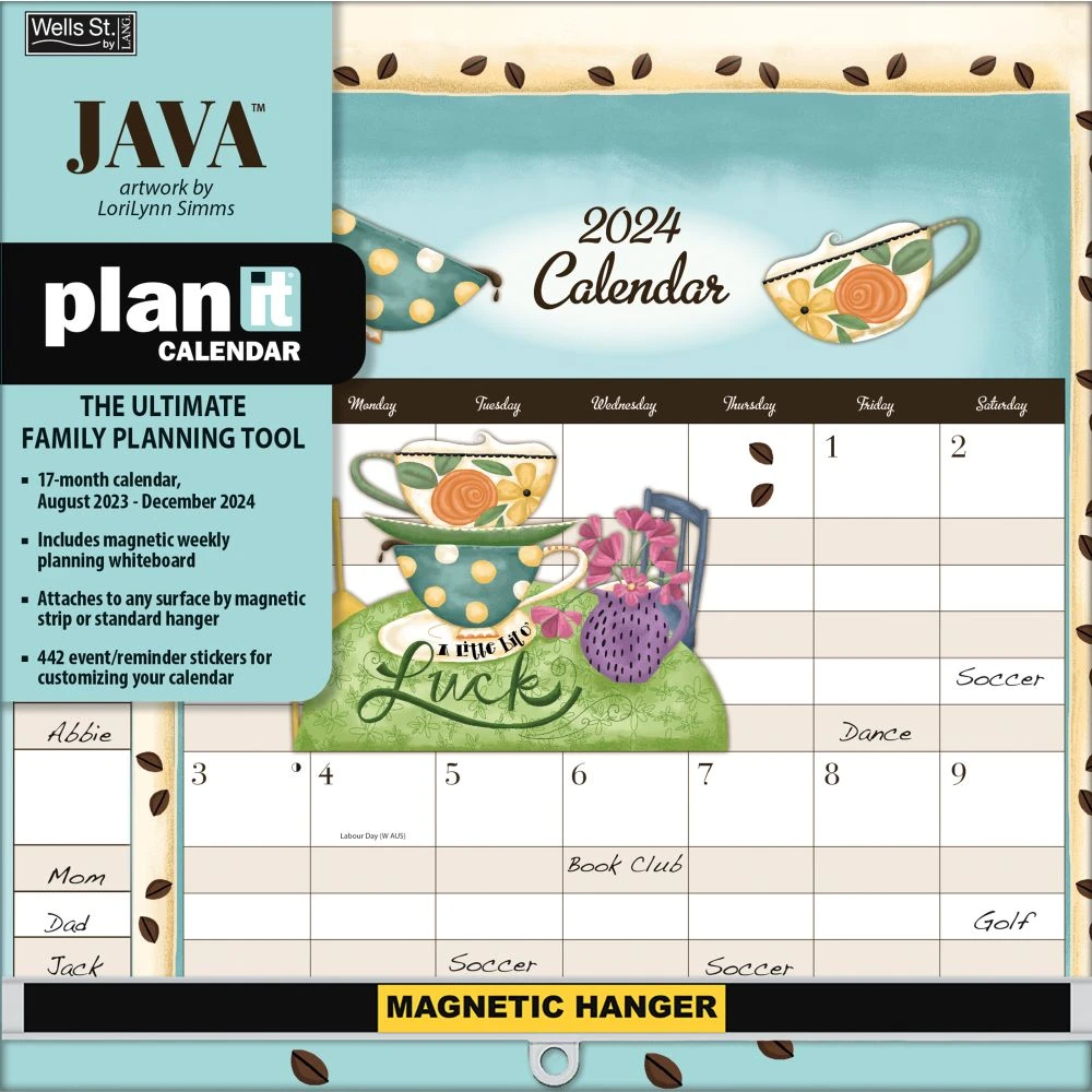 Plus, you get an extra 442 reminder stickers that make marking important events a cinch. And as a bonus, each month includes lovely coffee house inspired artwork created by Lisa Kaus. You dont need to worry about losing your planning notes just keep them on the included magnetic planning whiteboard! Make this the year you start keeping your whole family organized with the Java Plan It 2024 Wall Calendar!