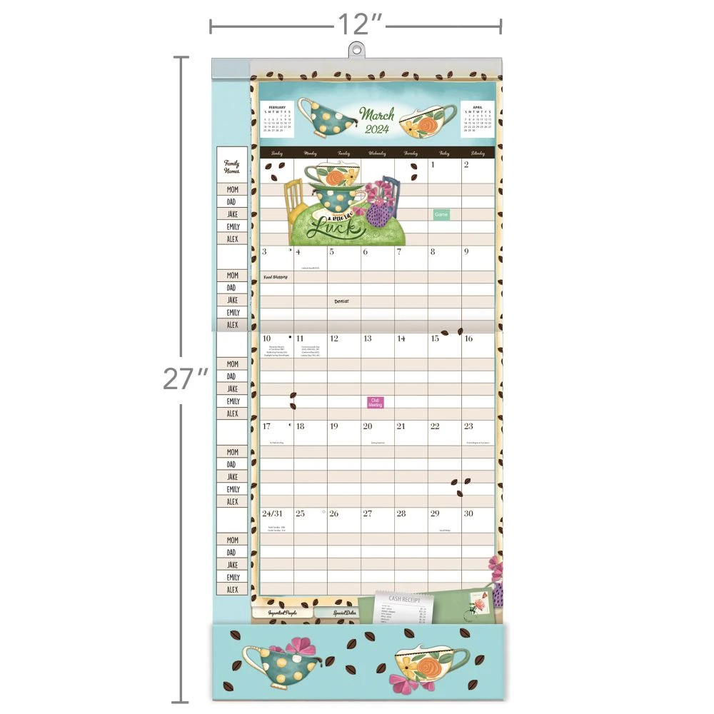 Start the new year organized and ready to plan out some long term goals with the Java Plan It 2024 Wall Calendar! This 17 month calendar is perfect for any planning professional or family looking for an easy way to stay on top of everyones schedules. With five individual family member rows, you can now easily track appointments, school activities, errands, and more for your whole family without needing separate calendars.
