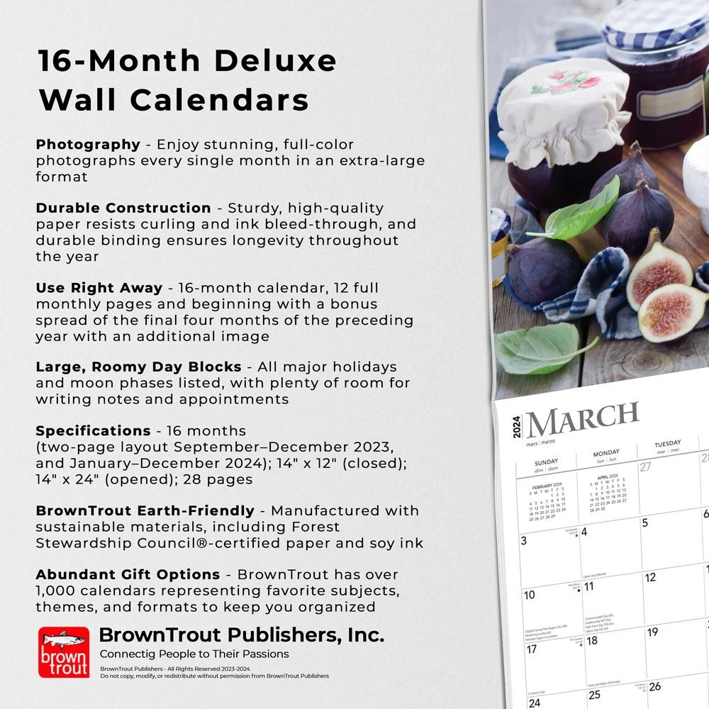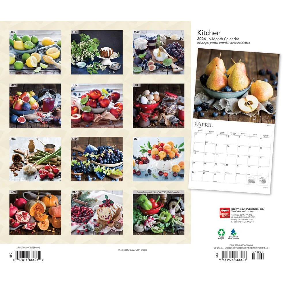 Warm and cozy with the inviting aromas of cooking food, the kitchen is a place for family and friends to gather and share the many wonders of food, conversation, and togetherness. This Kitchen calendar features a sumptuous collection of culinary still life photography.