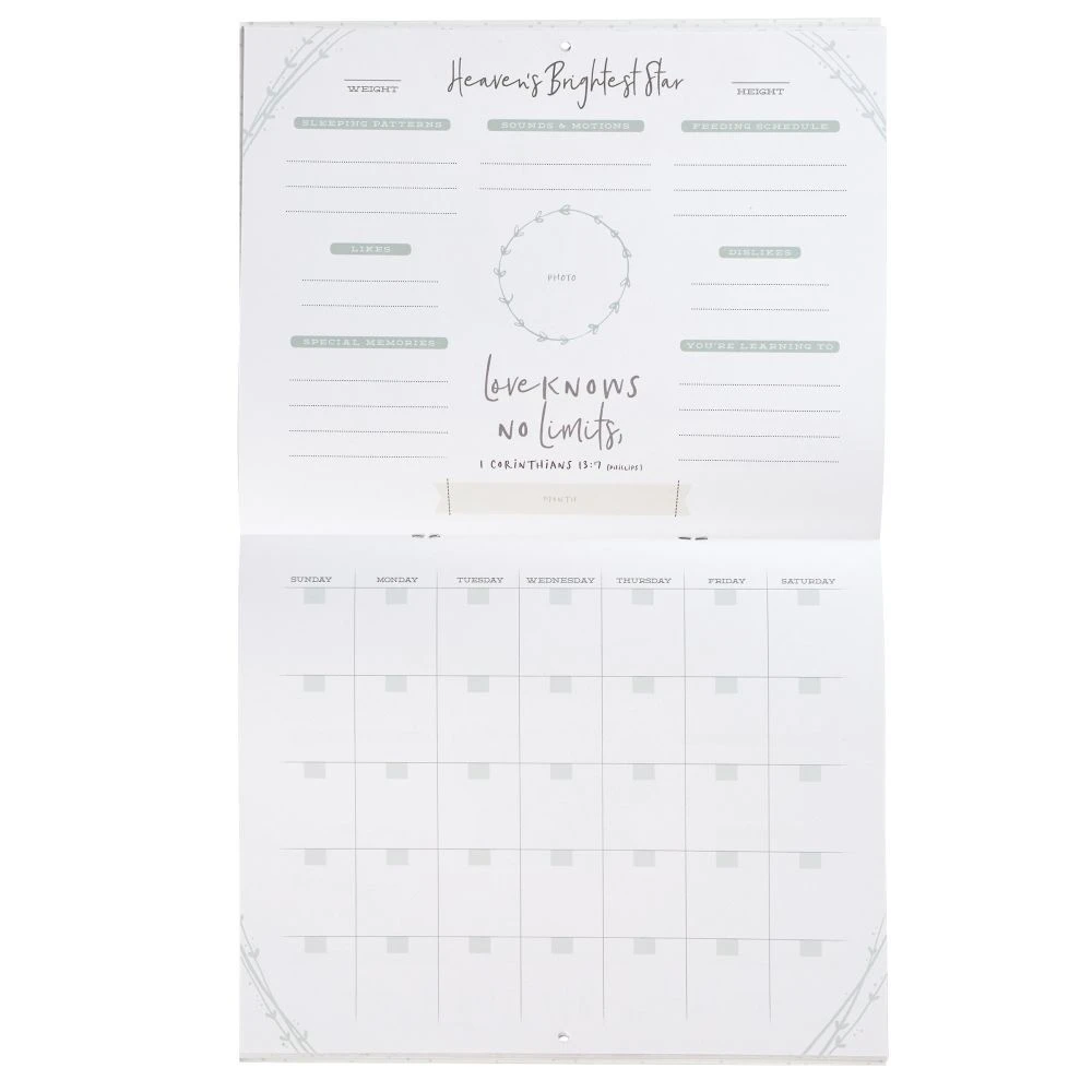 12 month, undated. Acid free, lignin free. Includes Sticker Sheet. Fully Customizable. Open Calendar is 11″ W x 18″ H
