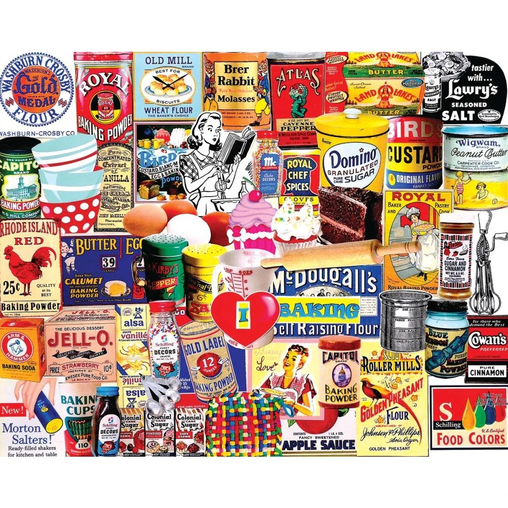 Love Baking 1000 Piece Puzzle This 1000 piece jigsaw puzzle contains thick interlocking pieces made from recycled premium blue chipboard that give a sturdy feel & easy grip. Made in USA. Finished size 24?x30?.