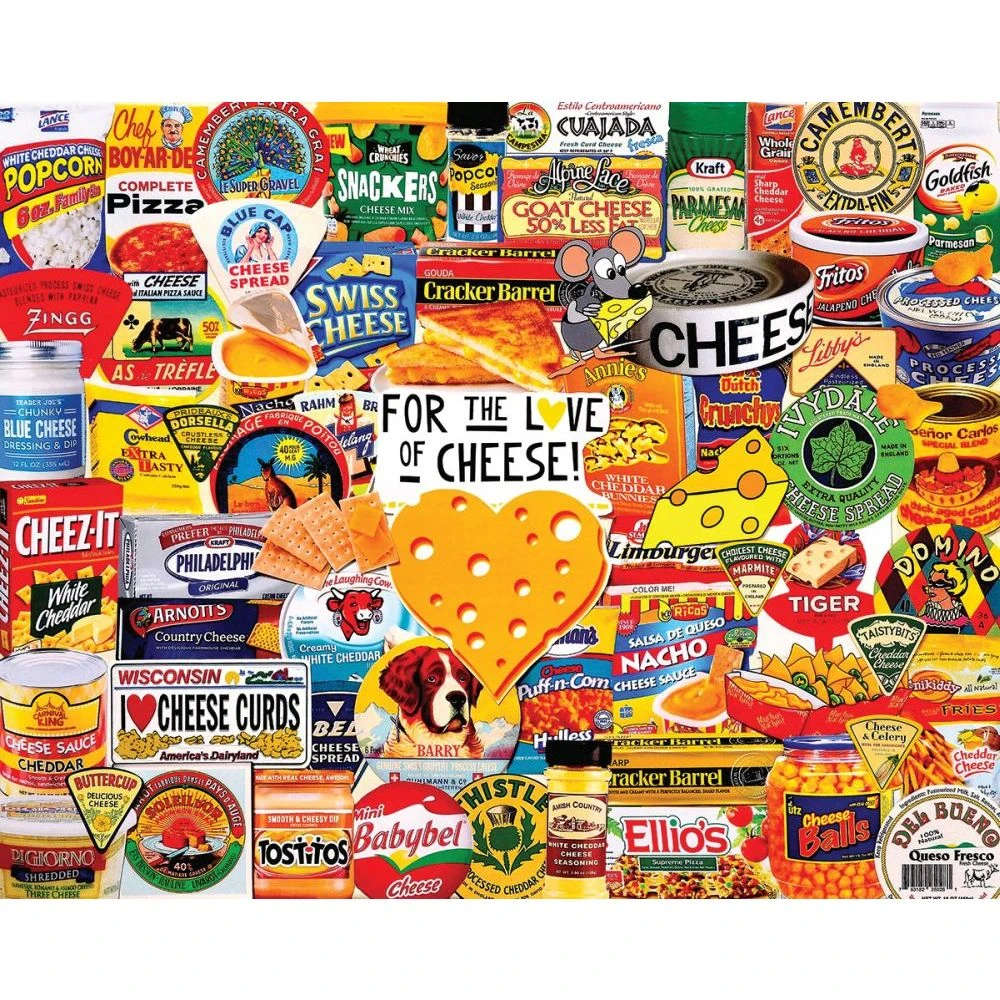 Love Cheese 1000 Piece Puzzle This 1000 piece jigsaw puzzle contains thick interlocking pieces made from recycled premium blue chipboard that give a sturdy feel & easy grip. Made in USA. Finished size 24?x30?.