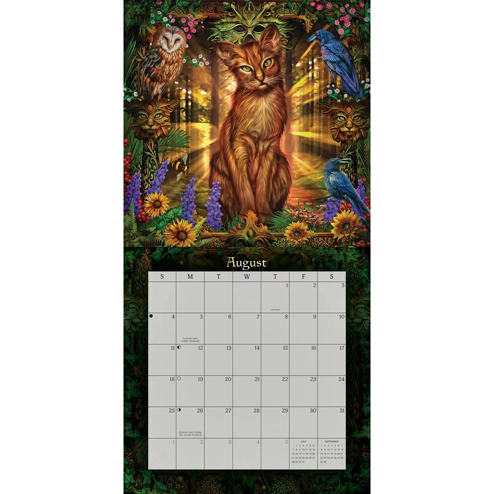 Enjoy a full year of catitude! With twelve magical scenes that any cat lover will adore, this calendar showcases feline poise and playfulness in a uniquely captivating way. Each illustration by award-winning artist Ciro Marchetti captures majestic yet inquisitive cat personalities in gorgeous otherworldly settings. His highly detailed work offers an enchanting escape and encourages you to live your most paw-some life. Includes major US, UK, and Canadian holidays, Pagan holidays, eclipses, and moon phases.