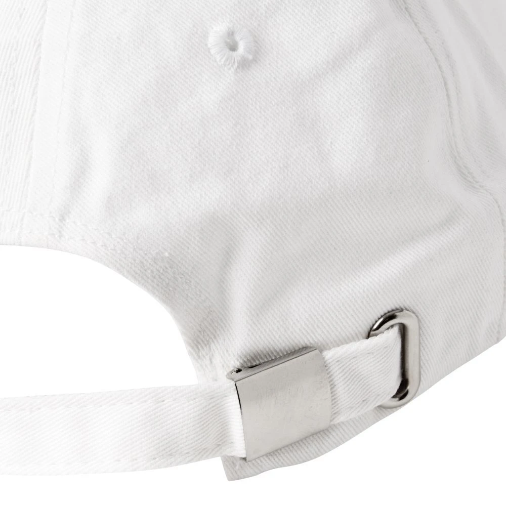 White cotton twill ball cap featured colorful embroidered detailing on the front. Rainbow/Mama. Adjustable