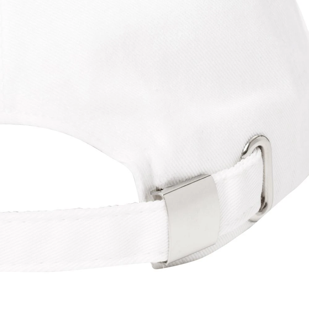 White cotton twill ball cap featured colorful embroidered detailing on the front. Rainbow/Mini. Adjustable