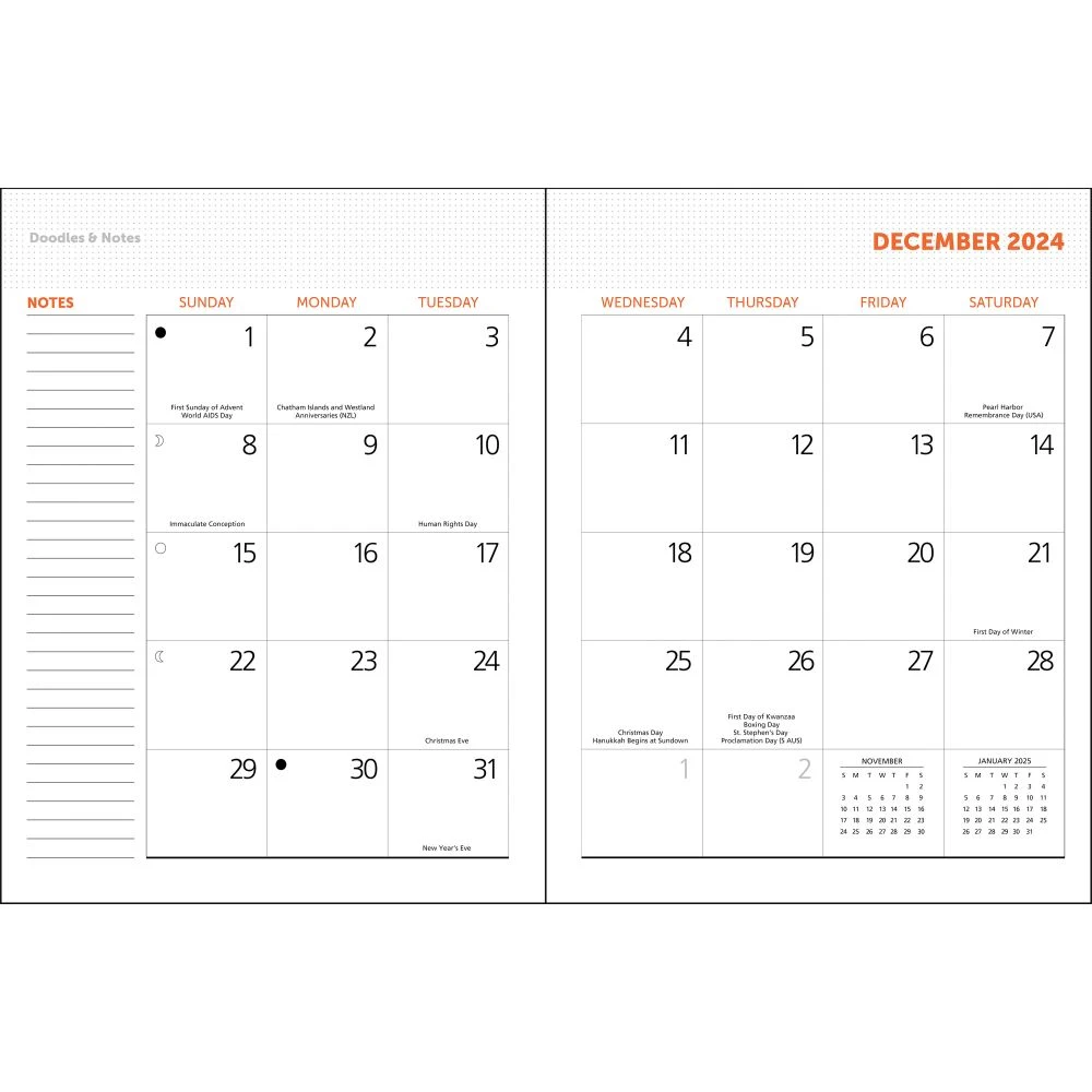 The exceptional collection of Japanese woodblock prints from the Museum of Fine art, Boston, specifically those of master ukiyo ye artists Katsushika Hokusai and Utagawa Hiroshige, is the source for the works featured in this monthly planner, which includes full size grids for July 2023 to December 2024. Scenes of everyday life in 19th century Japan are delicately rendered and beautifully colored using a technique whose origins reach as far back as the 8th century. Includes full year views for 2023, 2024, and 2025; international dialing codes; world time differences; tables of weights and measures; zodiac signs; and to do list pages.