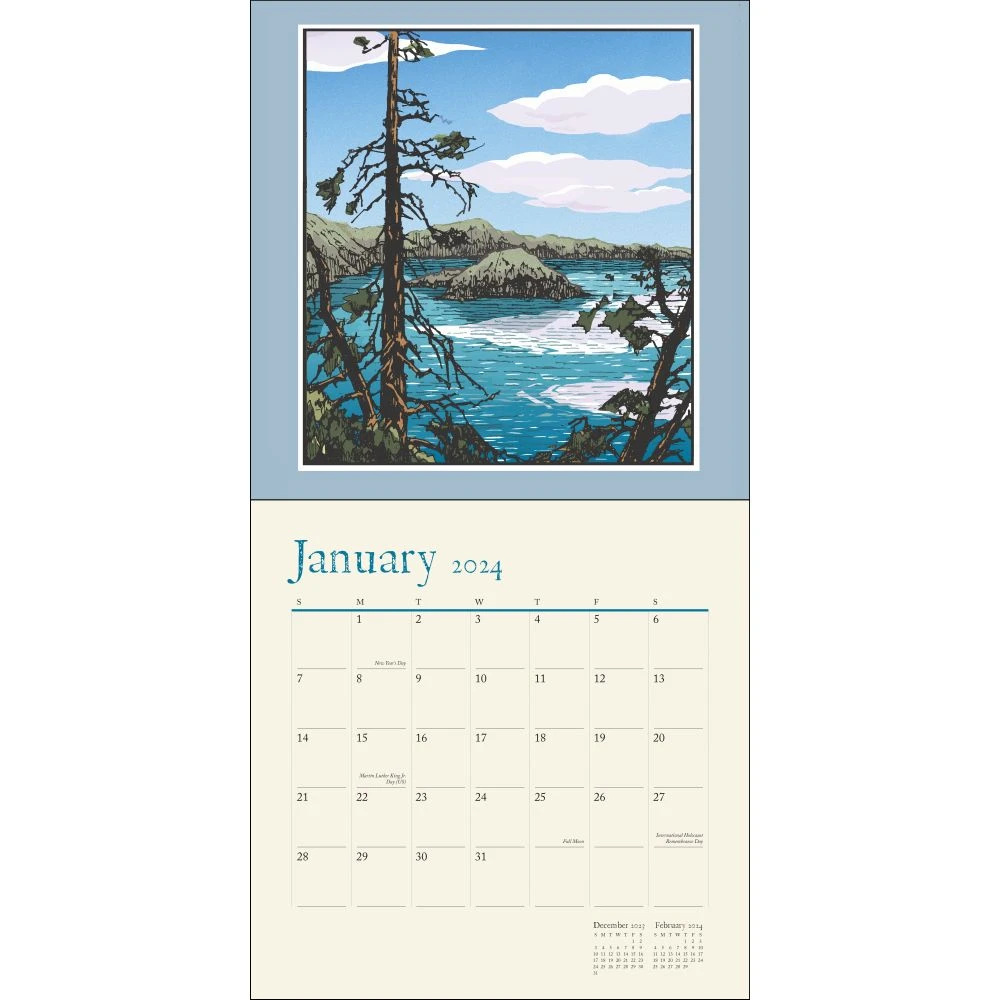 The Natural Art 2024 Wall Calendar celebrates Yoshiko Yamamoto’s traditional letterpress and woodblock printing art.