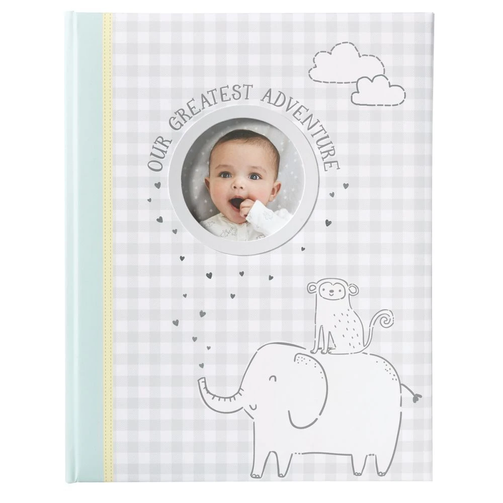 Carter’s Our Greatest Adventure memory book features adorable elephants and their character pals across the pages of this sweet memory book. 48 pages Acid free, lignin free Gift Boxed.
