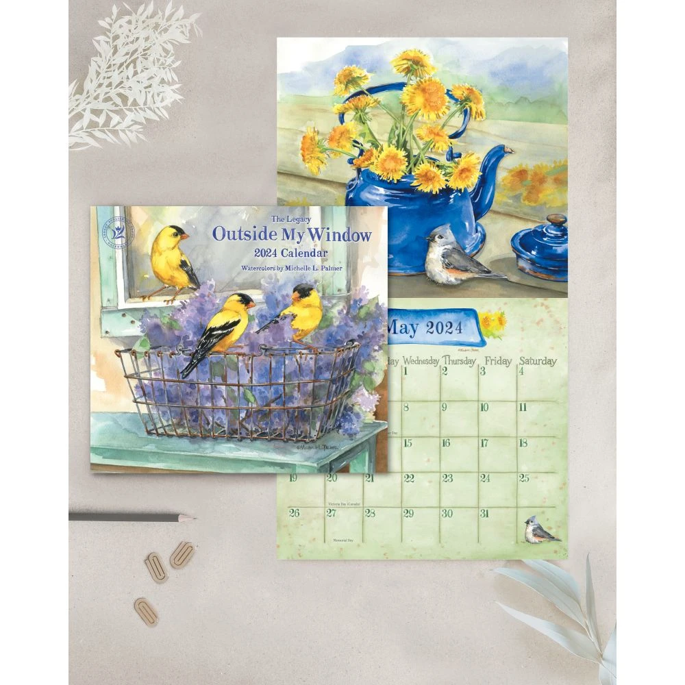 This 2024 Legacy Wall Calendar features artist Michelle Palmer’s detailed, watercolor portraits of our feathered friends. Each 12 month calendar is printed on premium, linen embossed paper that has a distinctive, luxurious feel to it, and comes in a protective sleeve. The date pad is uniquely designed for each calendar title to complement the artwork. The last page contains a 2 year calendar (2023/2024) and space for notes. Brass gusset on front cover for added durability.