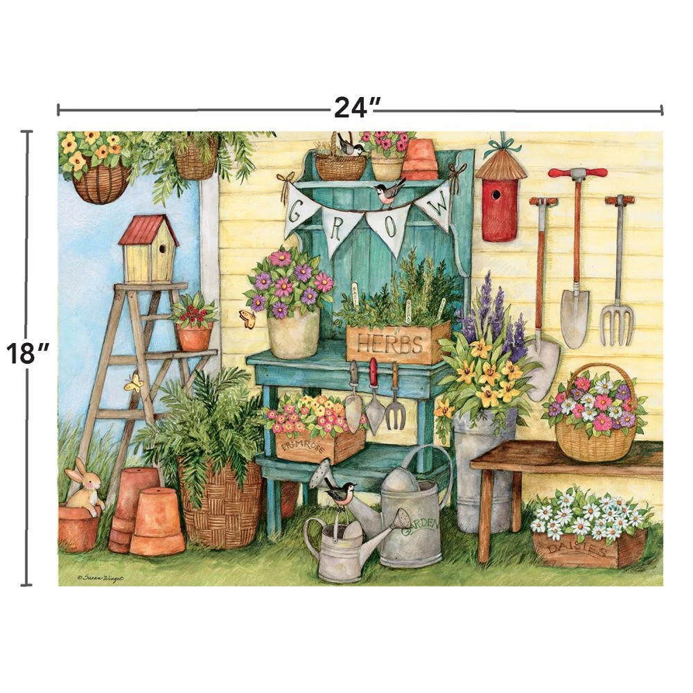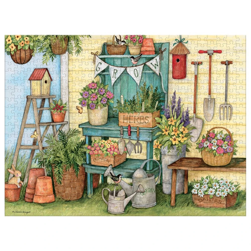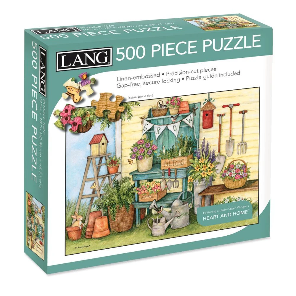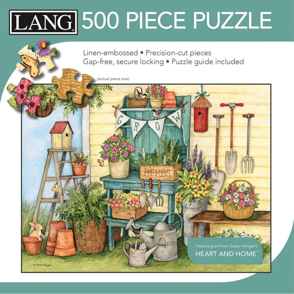 LANG jigsaw puzzles are a fun, yet challenging activity to do with friends and family. Assemble the Potter’s Bench 500 Piece Puzzle to form a beautiful puzzle featuring a garden scene by Susan Winget. All pieces, finished with elegant linen embossed paper, securely lock in place and come in a resealable plastic bag. An art print guide is also included to help you solve this challenging puzzle!