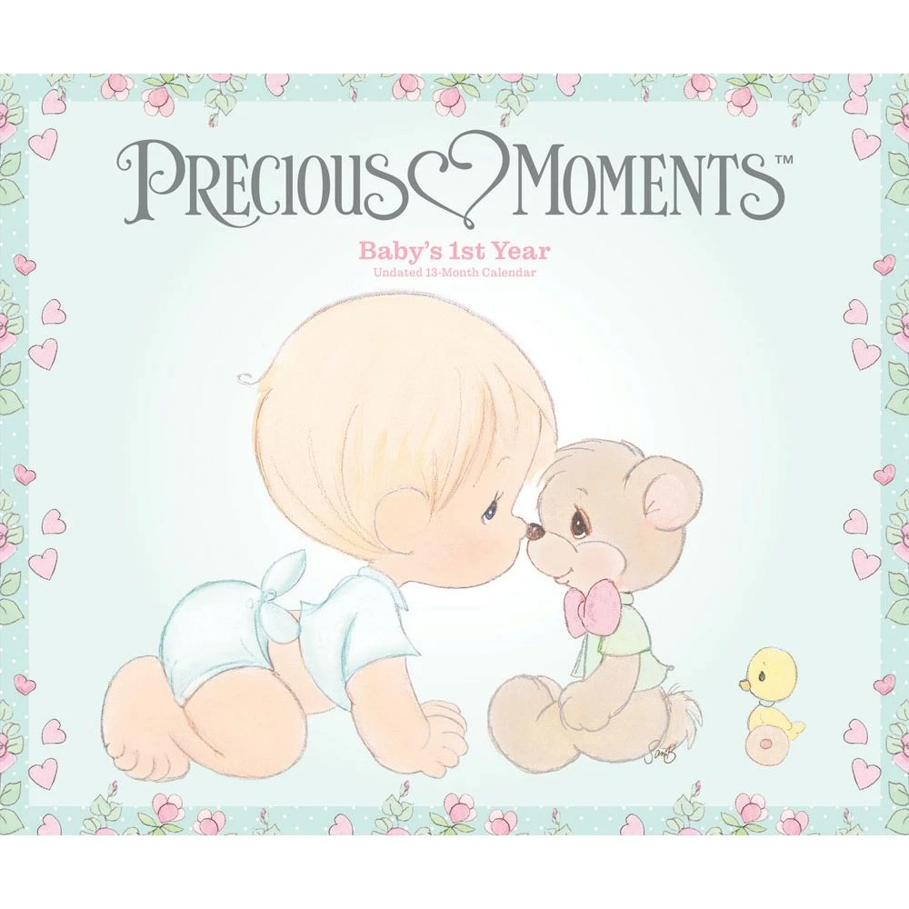 Celebrate all of your baby’s ‘firsts’ with this Precious Moments Baby’s 1st Year wall calendar. There are spaces for photographs and notes, in the undated 13 month calendar, as well as a set of colorful stickers. The perfect keepsake for the first year of your baby’s life.