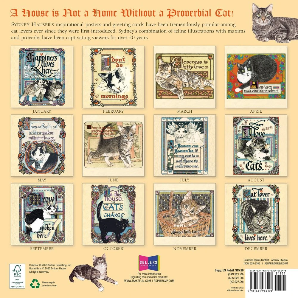 A house is not a home without a proverbial cat! Sydney Hauser combines her delightful illustrations of cats with calligraphy featuring maxims and proverbs enacted by cats. A purrrfect way to keep track of the year! Sydneys combination of feline illustrations with maxims and proverbs have been captivating viewers for over 20 years.