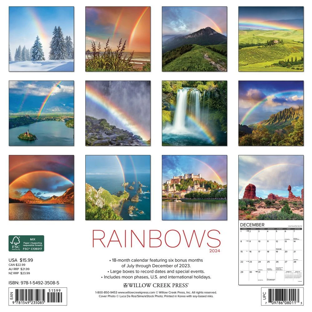 Have faith in your dreams, it is said, and someday your rainbow will come shining through. These twelve stunning and heartwarming rainbow photographs accompanied by inspiring quotes will lift you up with cheerful optimism throughout the sure to be awesome new year. Printed with soy based inks on FSC certified paper, this 12″ x 24″ wall calendar features large monthly grids that offer ample room for jotting notes, along with six bonus months of July through December of 2023. Also includes moon phases (CST), standard U.S. and international holidays.
