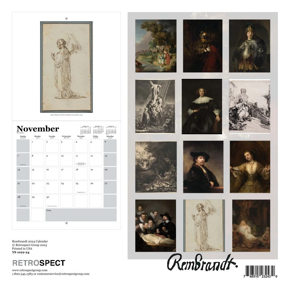 The Rembrandt Calendar captures the essence of a wide variety of Rembrandt�s work. You are sure to enjoy this calendar full of artwork created by this baroque painter and talented illustrator. These oversized wall calendars are presented on 100% fine natural linen paper. With a subtle weave pattern, this ivory colored natural paper has a very slight raised texture on the front and a smooth feel on the back. The calendar grid offers ample space for personal notations and displays major US holidays. Each calendar is spiral bound and the pages are suitable for framing at year�s end. Perfect for home or office, our calendars are produced in the USA using environmentally friendly processes and printed on FSC certified and recycled paper.