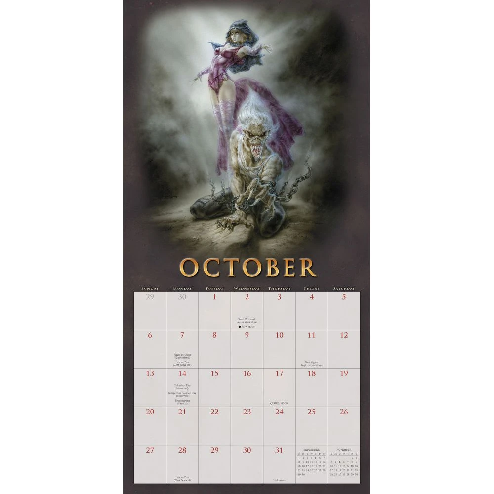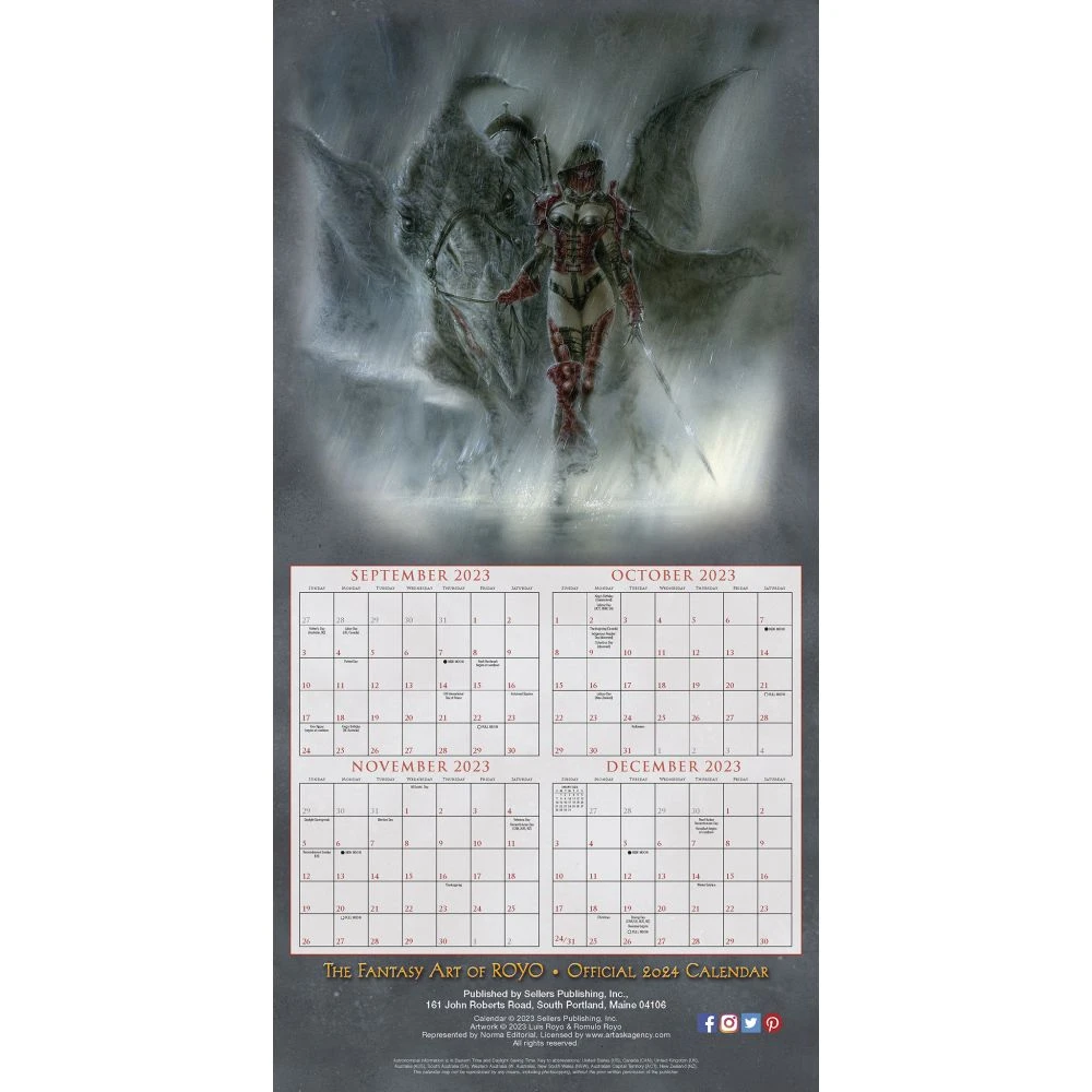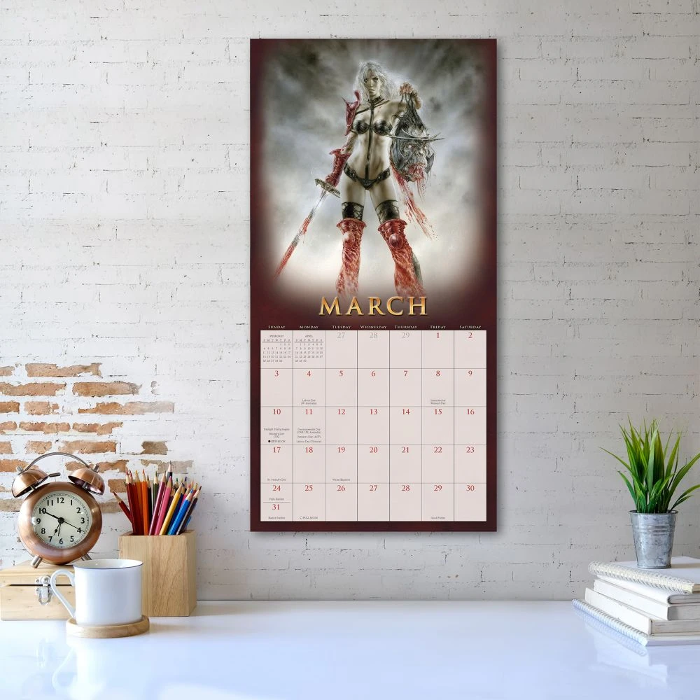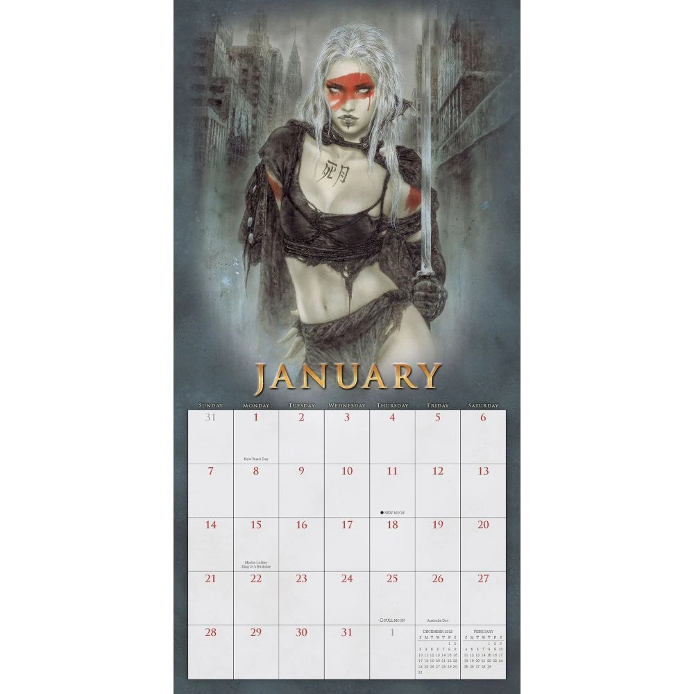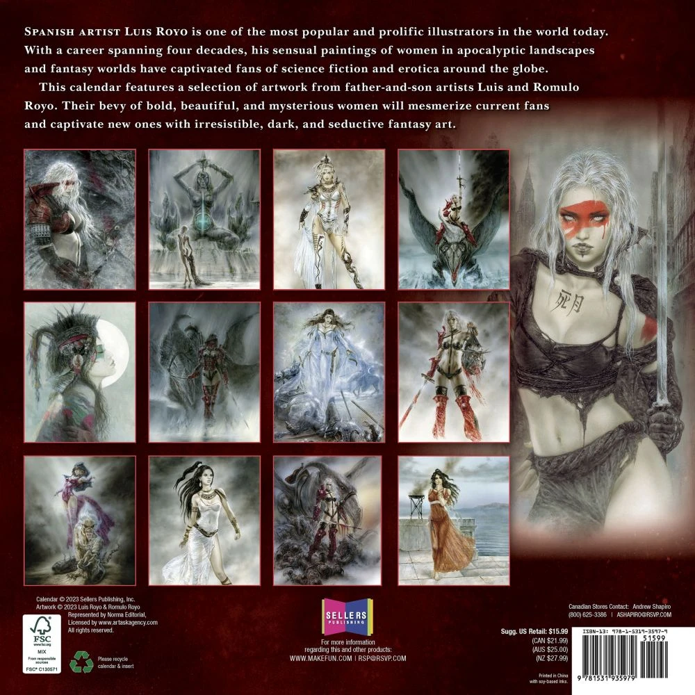 Spanish artist Luis Royo is one of the most popular and prolific illustrators in the world today. His sensual paintings of women in apocalyptic landscapes and fantasy worlds have captivated fans of science fiction and erotica around the globe. The Fantasy Art of Royo wall calendar features a selection of his newest. The bevy of bold, beautiful, and mysterious women will mesmerize current fans and captivate new ones with irresistible, dark, and seductive fantasy art.