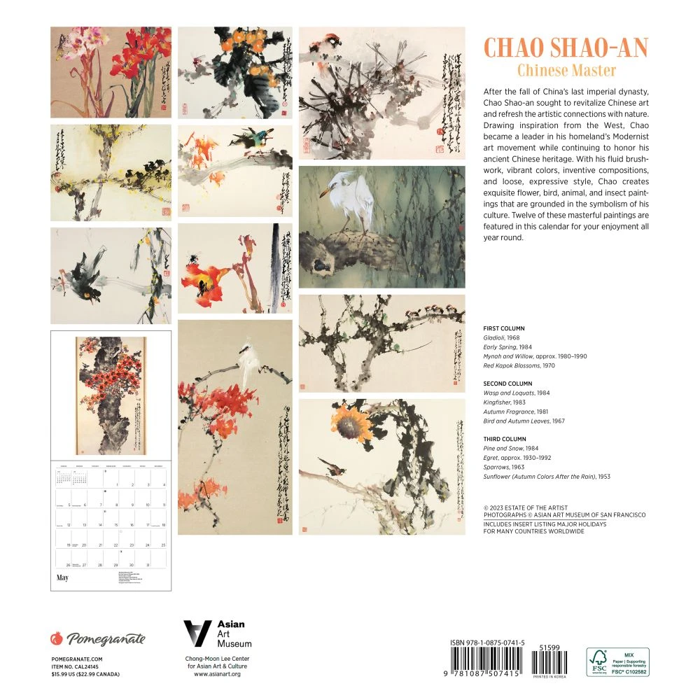 After the fall of China’s last imperial dynasty, Chao Shao-an sought to revitalize Chinese art and refresh the artistic connections with nature. Drawing inspiration from the West, he became a leader in his homelands’ Modernist art movement while continuing to honor his ancient Chinese heritage. With fluid brushwork, vibrant colors, inventive compositions, and loose, expressive style, Chao Shao-an creates exquisite flower, bird, animal, and insect paintings that are grounded in the symbolism of his culture. Twelve of these masterful paintings are featured in this calendar for your enjoyment all year round.