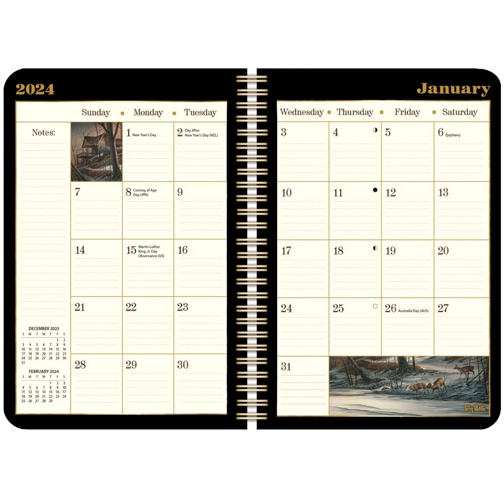 The Terry Redlin 2024 Spiral Bound Engagement Planner is filled with artwork of rural and outdoor settings depicted by Terry Redlin himself. LANG Spiral Engagement Planners feature weekly and monthly calendar views, a sturdy hardcover, spiral wire binding, premium paper stock and additional pages for notes and addresses.