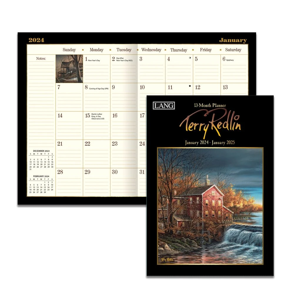 The Terry Redlin 2024 Monthly Planner features Terry Redlin’s artwork of rural settings in a 13 month calendar format with ample room for notes and engagements. LANG Monthly Planners also feature a 2024 Planning Guide and linen embossed paper cover and pocket sleeve.