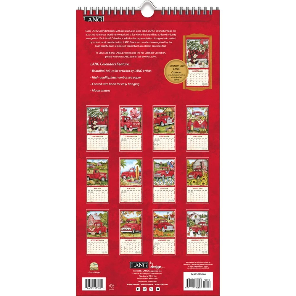 With a narrower format, the space saving design of the Truckin’ Along Vertical Wall Calendar makes it a natural fit in office niches or compact spaces at home. Featuring artwork by Susan Winget, quality linen embossed paper, a matching gift sleeve, and a spiral binding with hook, make this monthly calendar yours, or give it to a loved one.