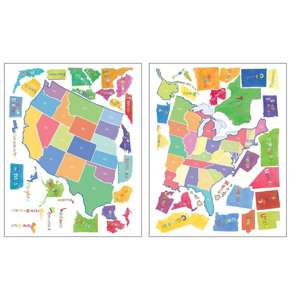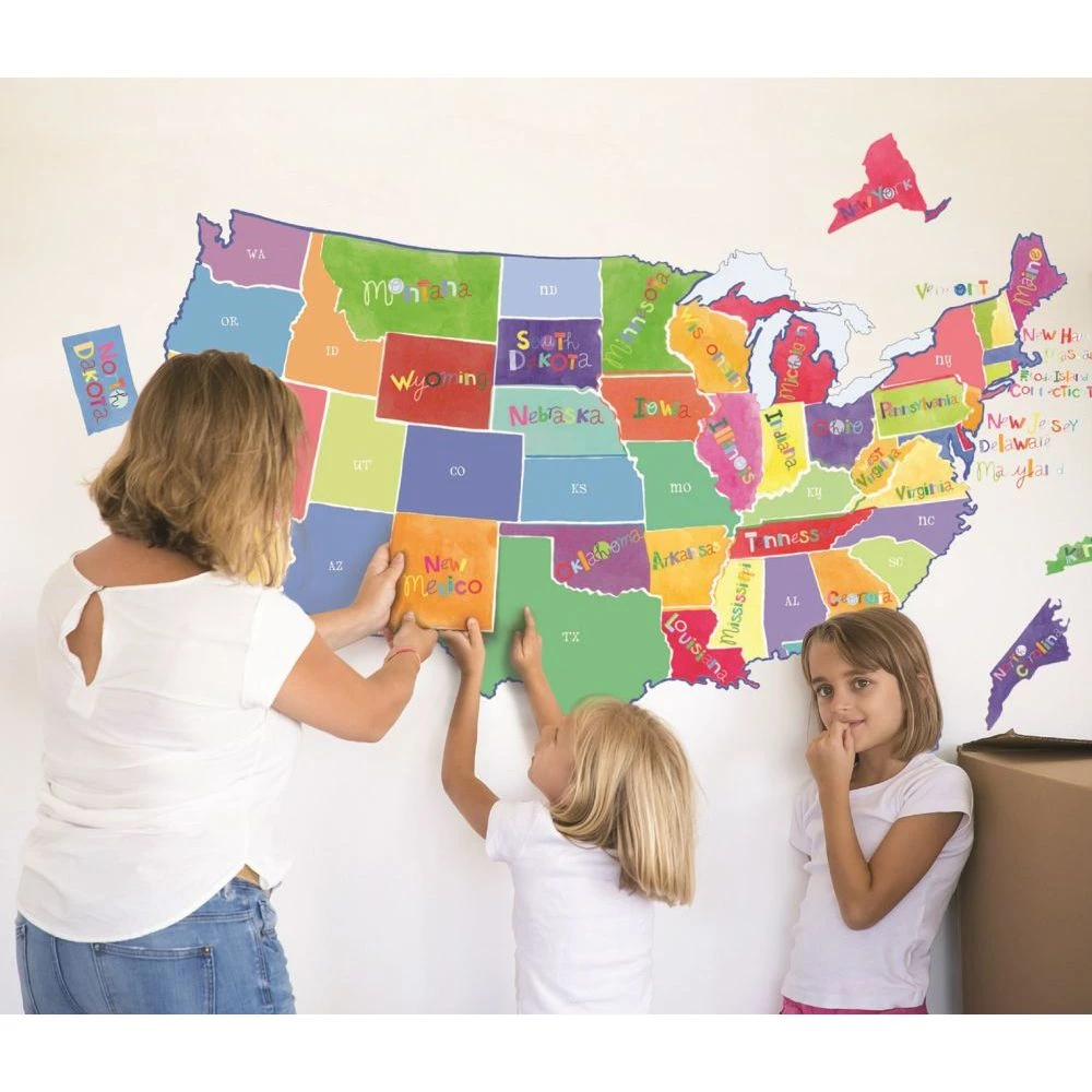 Hooray for the USA! Learning about the states has never been easier or more fun than with our US state map wall decal set.