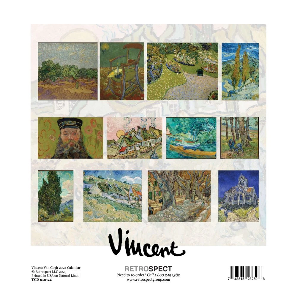 The Vincent Van Gogh Calendar captures the essence of a wide variety of Van Gogh?s work. From landscapes, to still life paintings, you are sure to enjoy this colorful calendar. This 12.5? x 19? Wall Calendar contains works of art selected from private collections and world renowned museums. These oversized wall calendars are presented on 100% fine natural linen paper. With a subtle weave pattern, this ivory colored natural paper has a very slight raised texture on the front and a smooth feel on the back. The calendar grid offers ample space for personal notations and displays major US holidays. Each calendar is spiral bound and the pages are suitable for framing at year?s end. Perfect for home or office, our calendars are produced in the USA using environmentally friendly processes and printed on FSC certified and recycled paper.