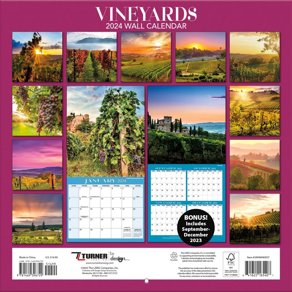 As beautiful as this classic Turner Photographic Wall Calendar looks on your wall, also keep in mind that it?s printed on responsibly sourced FSC paper using eco friendly soy ink. Plus, it’s entirely plastic free and 100% recyclable ? a great way to express yourself while also protecting our environment. Whether you’re spoiling yourself with something special or gifting someone else; there is no better way to set the tone for a new year than with Vineyards 2024 Wall Calendar!